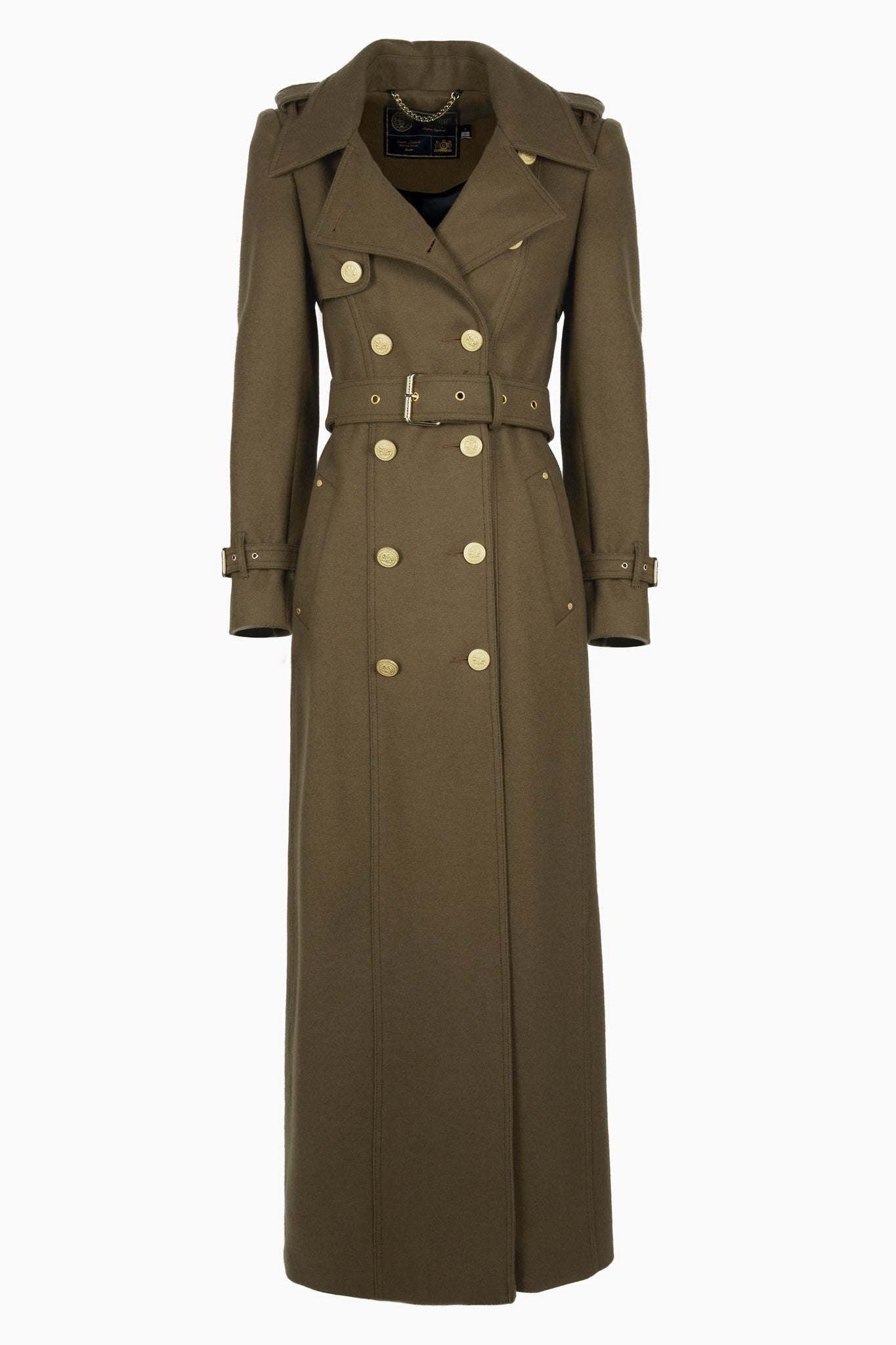 The Full Length Chelsea Trench is our new British Made Tailoring design. Sophisticated and timeless, the Chelsea is a wardrobe staple and a lifetime investment. With a larger lapel than our iconic Marlborough design and contrasting trim collar, this piece is designed to be worn open for maximum impact. Detailed with a double breasted-front and belted waist to add flattering definition.