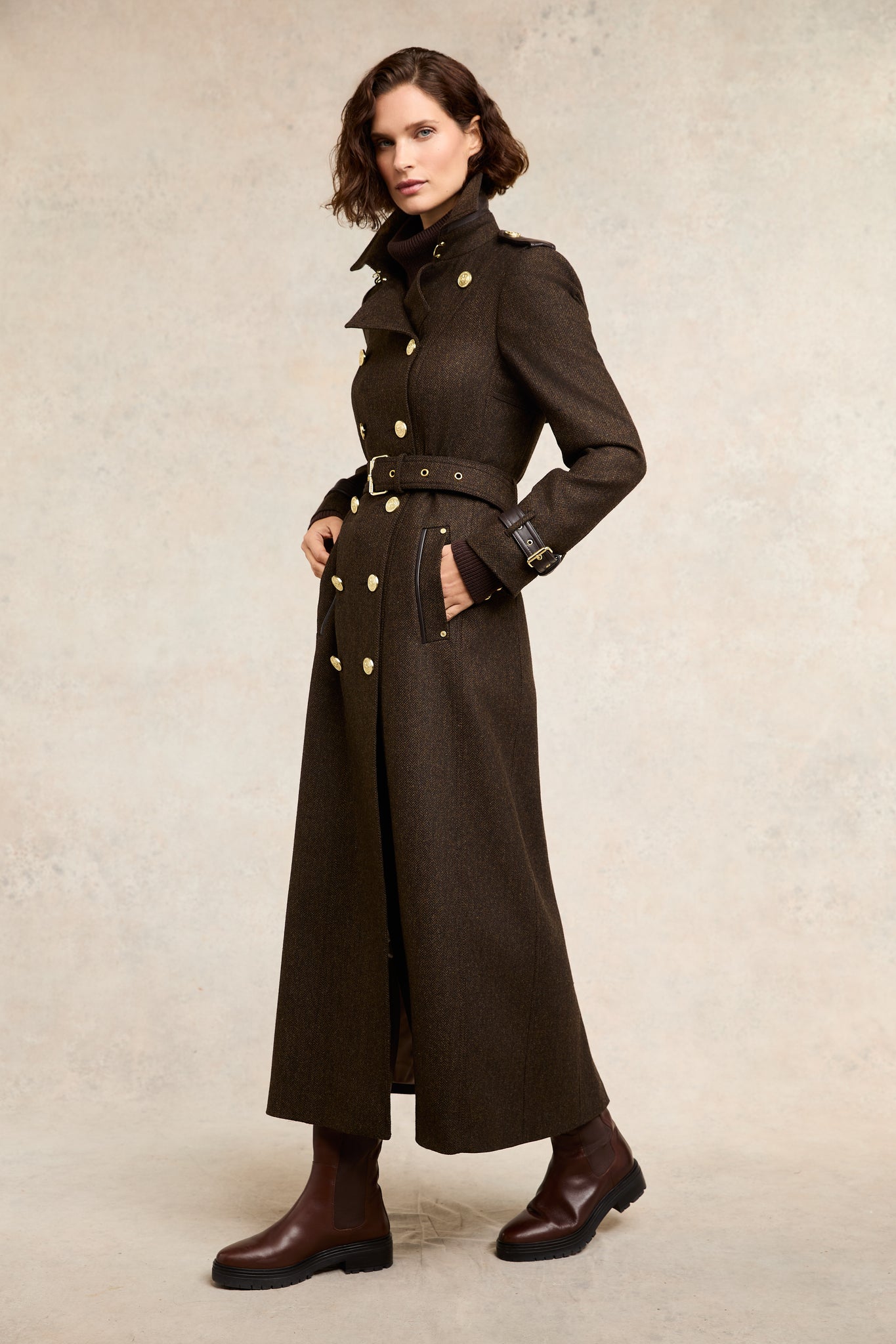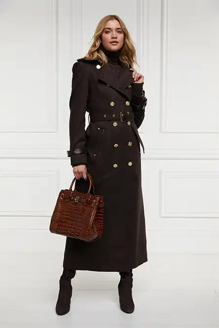 Combining classic tailoring with our exciting heritage, our iconic Full Length Marlborough Trench Coat has been handmade in the UK with the utmost care and attention. Tailored for a slim fit with a longline silhouette, its double breasted-front and belted waist adds to the flattering definition that stands at the forefront of its design. Beautifully elevated with statement lapels, military-inspired epaulettes and HC's iconic hardware. For a bold statement, wear open to allow for a fluid drape and movement.