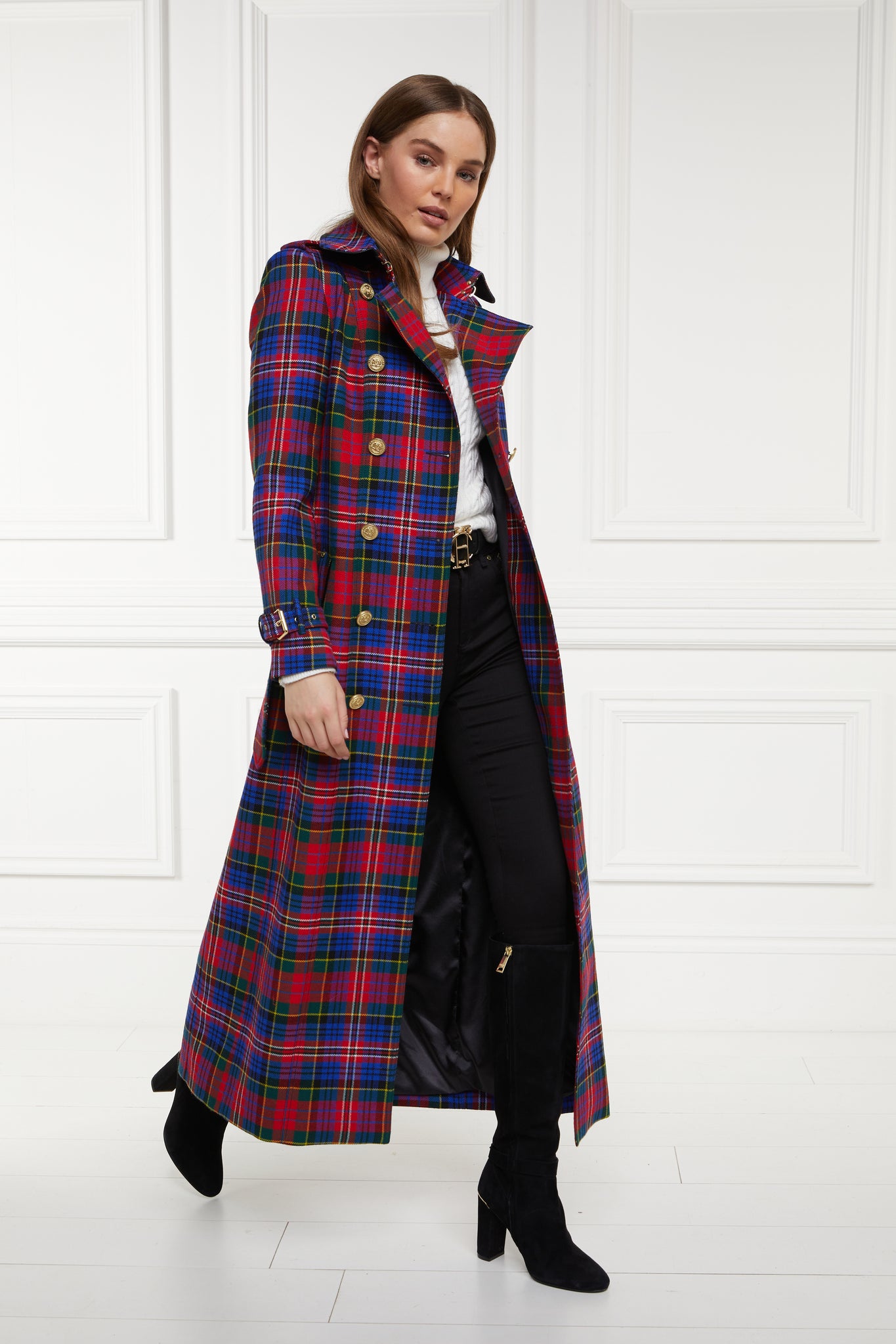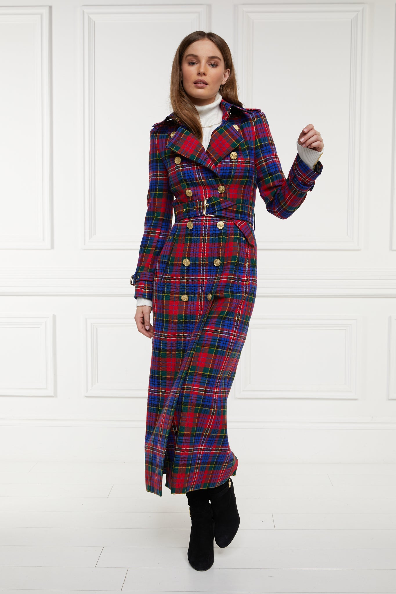Classic and timeless, the Marlborough full length trench coat is a wardrobe staple and a lifetime investment. A fitted design that complements any figure, its double breasted-front and belted waist adds to the flattering definition that stands at the forefront of its design.