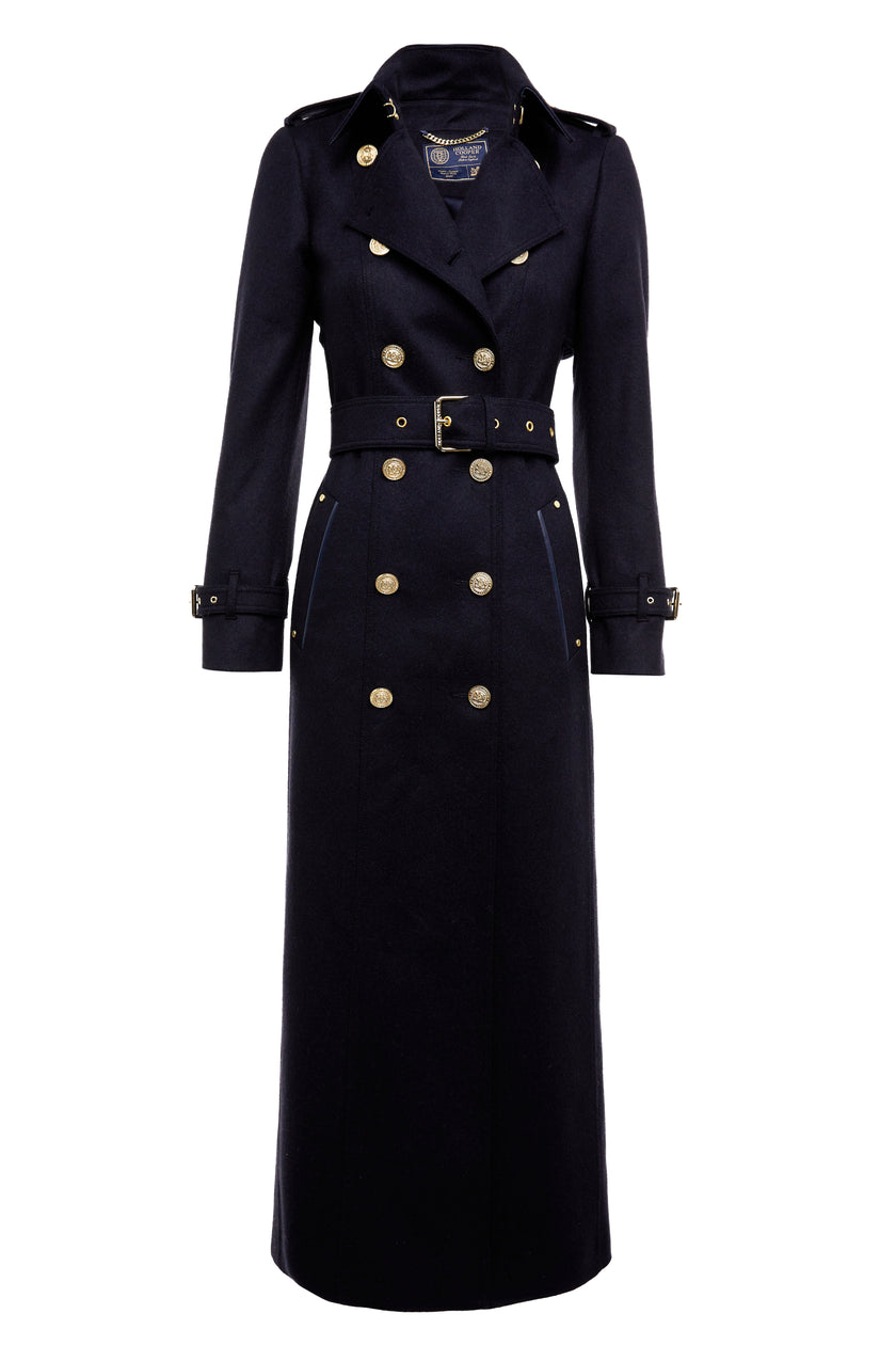 Combining classic tailoring with our exciting heritage, our iconic Full Length Marlborough Trench Coat has been handmade in the UK with the utmost care and attention. Tailored for a slim fit with a longline silhouette, its double breasted front and belted waist adds to the flattering definition that stands at the forefront of its design. Beautifully elevated with statement lapels, military-inspired epaulettes and HC's iconic hardware.