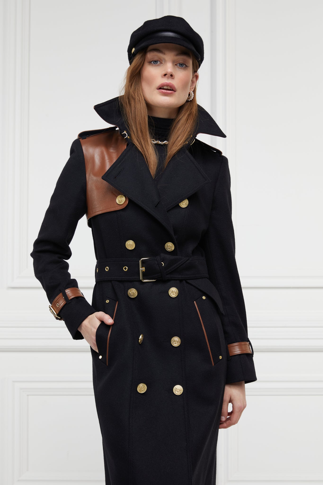 Classic and timeless, this limited edition Marlborough full length trench coat is a wardrobe staple and a lifetime investment. A fitted design that complements any figure, its double breasted-front and belted waist, with genuine leather accents, adds to the flattering definition that stands at the forefront of its design.