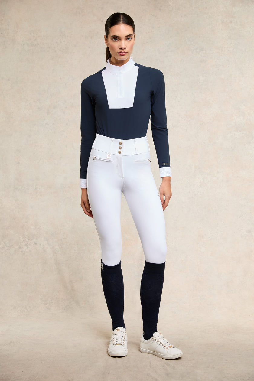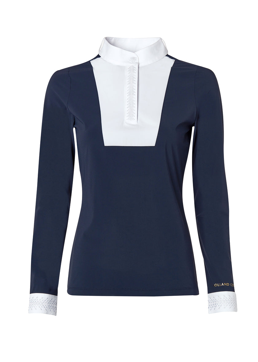 Introducing the Gatcombe Long Sleeve Show Shirt, designed to maintain style even in colder months. Crafted from smooth, soft-touch fabric, the main body is complemented by a contrast woven bib, collar, and cuffs for a sophisticated touch. The shirt features a high build embroidery pattern on the placket and cuffs, with concealed snaps for a sleek finish.