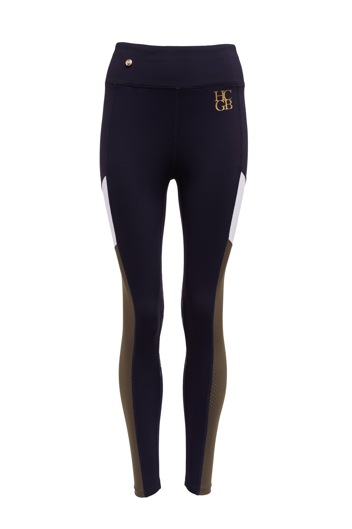 Designed with a body contouring compression fabric construction for ultimate stretch and support, these leggings have been designed with UK riders in mind. Made from a moisture-wicking material with a flattering elasticated high waist for added comfort. Detailed with perforated side panels and our iconic HC branding, adorned with our signature gold HC hardware.