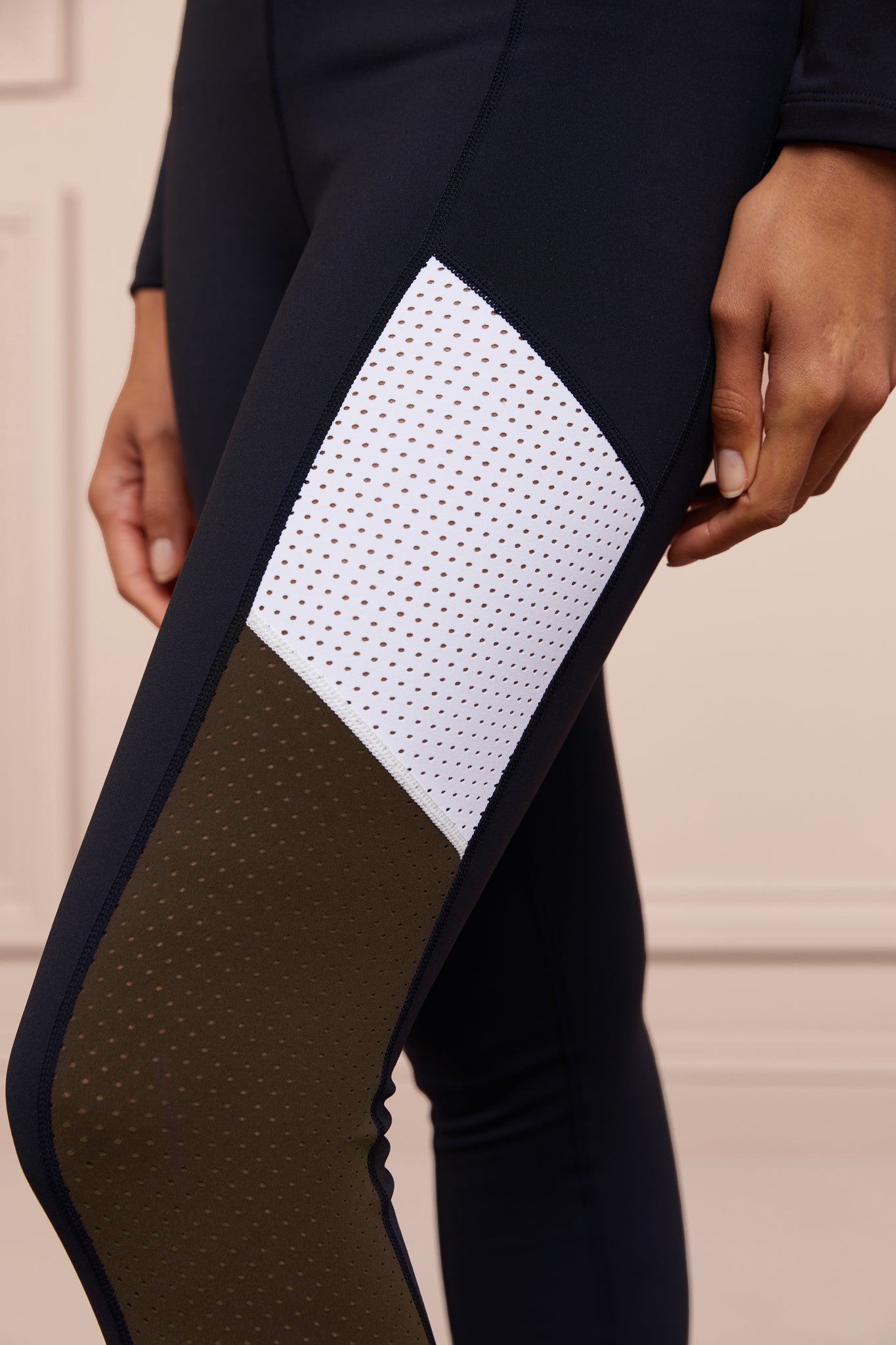 - HC monogram grip to inner thighs for increased control in the saddle