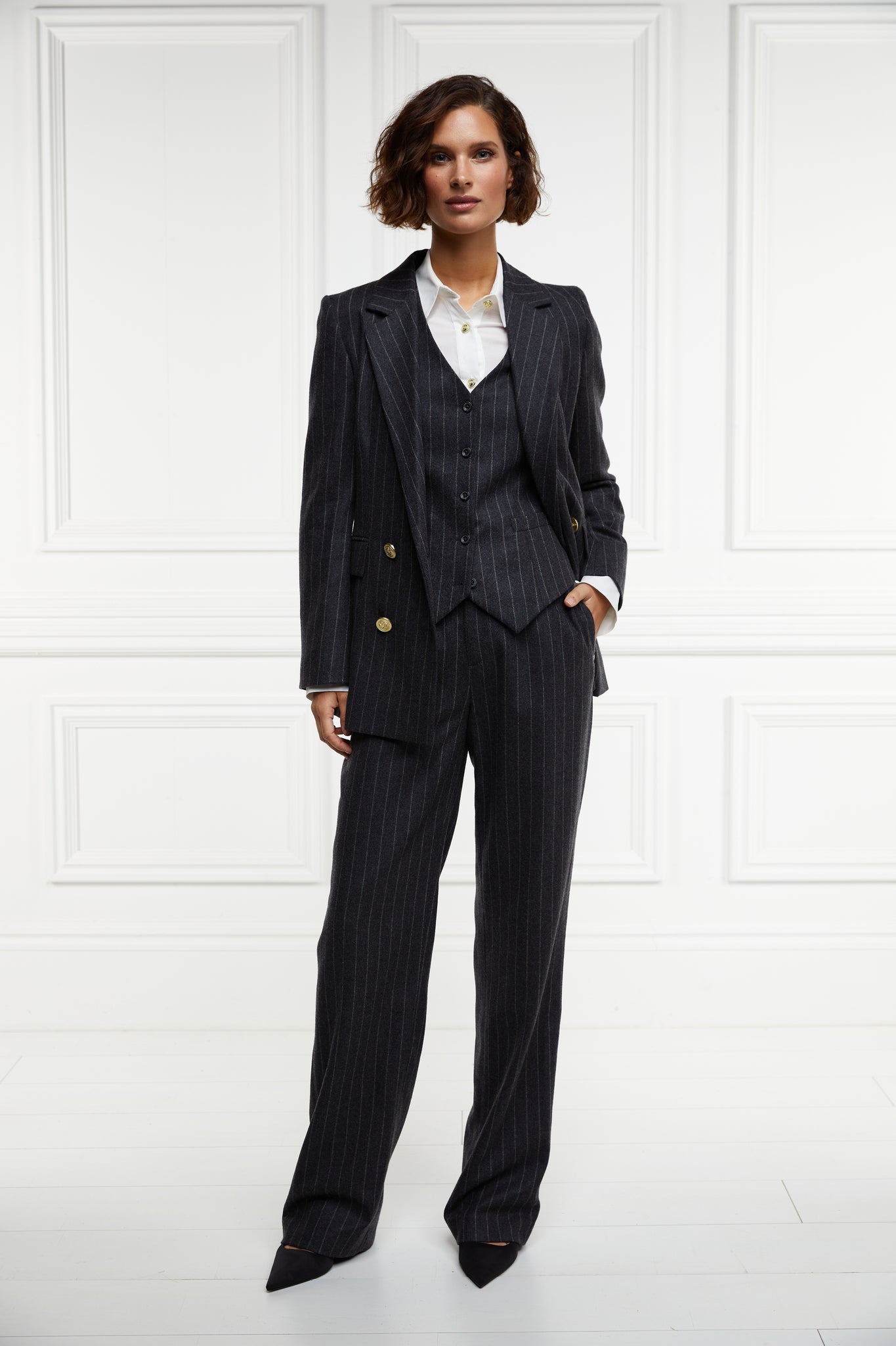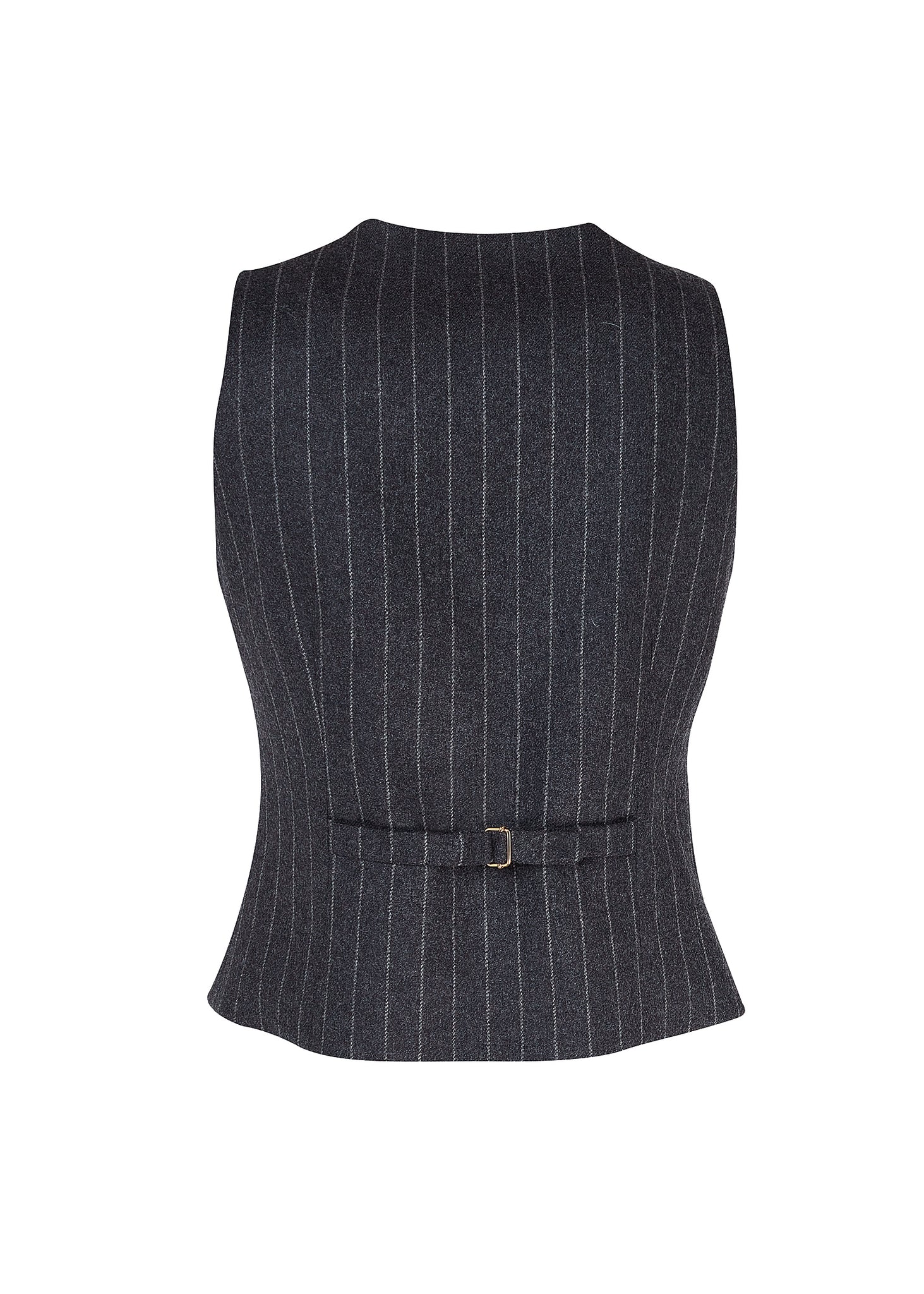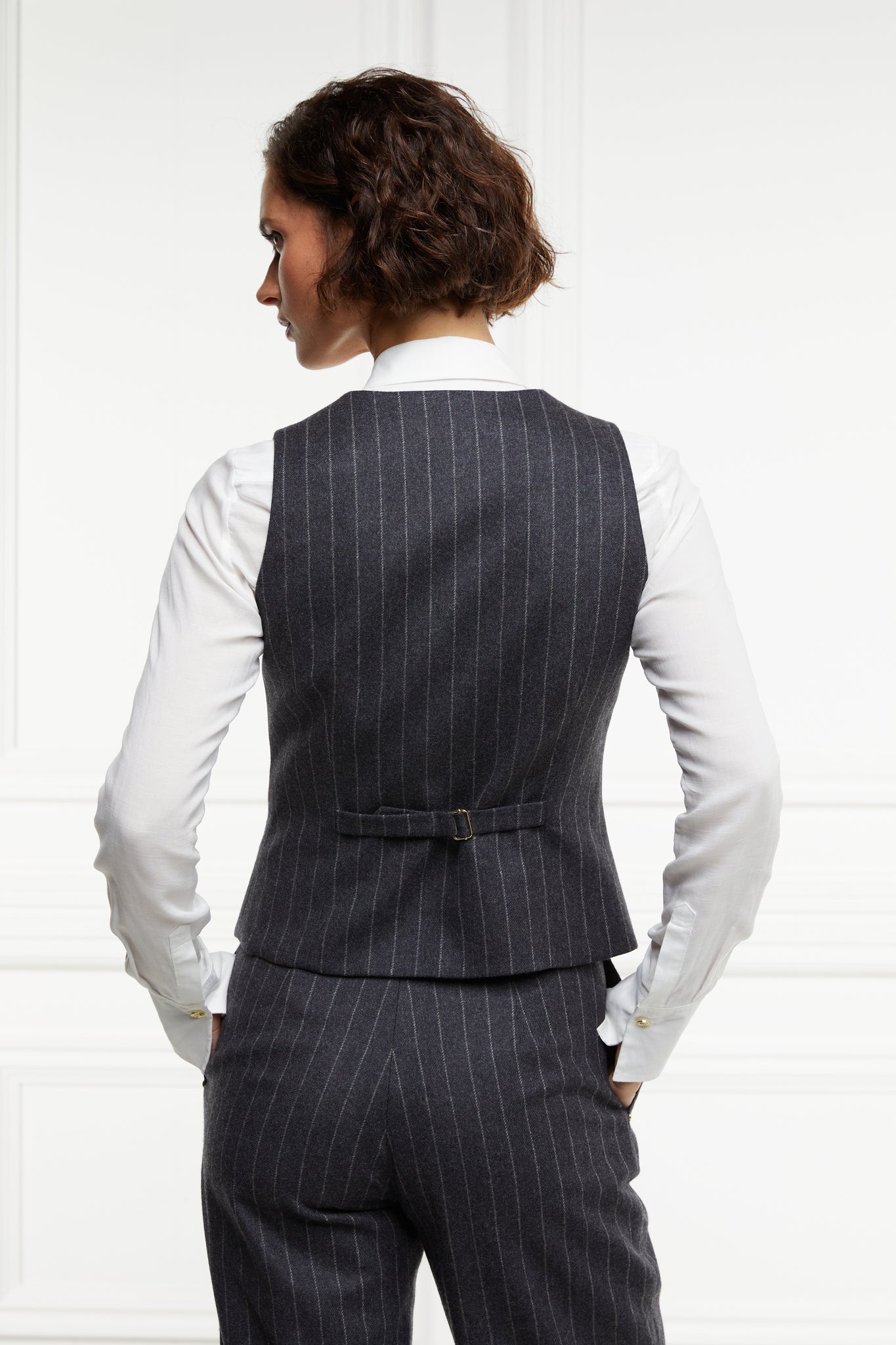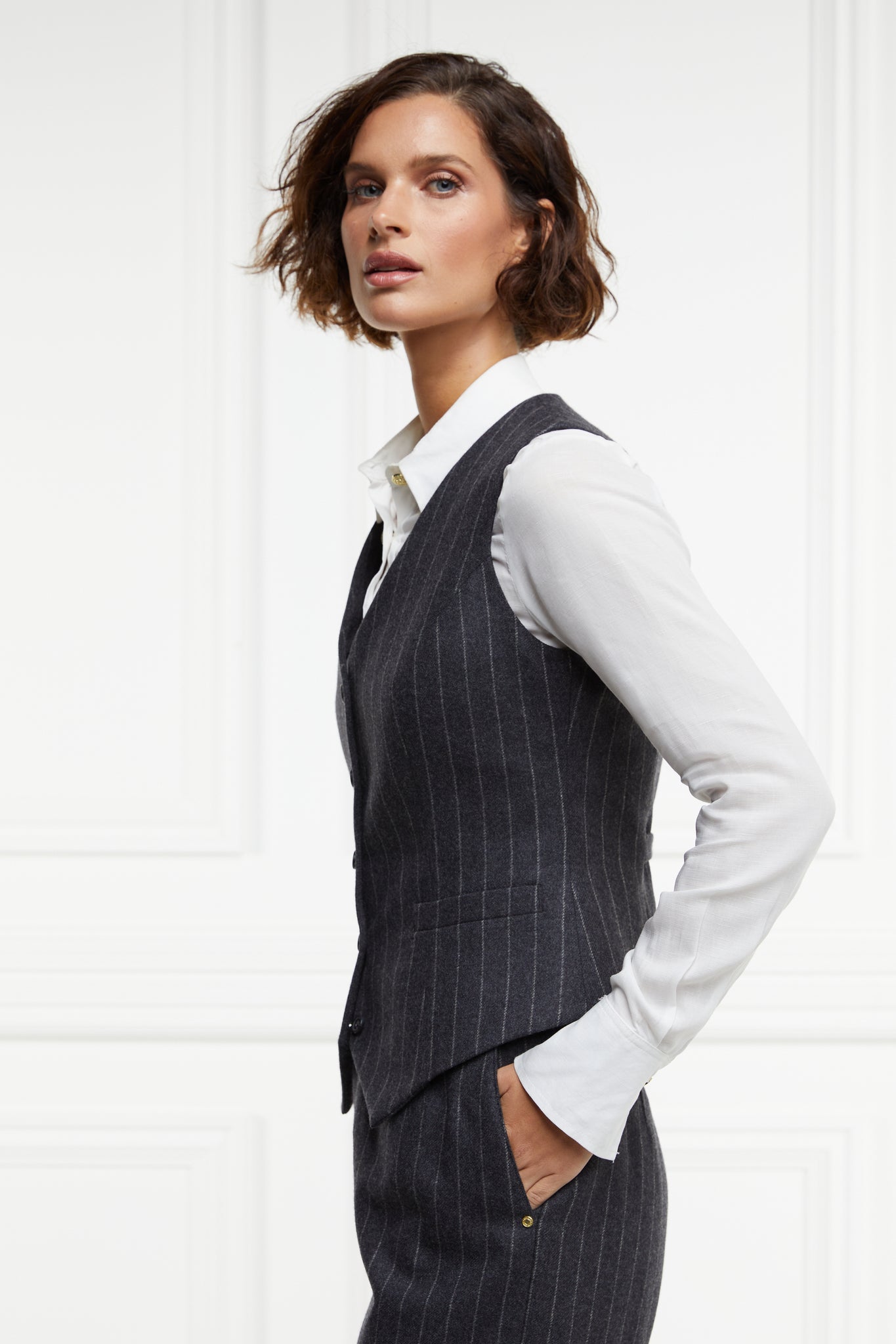 Both classic and refined, this waistcoat offers a slim tailored fit with a skimming v-neckline and elegantly shaped hem. A classic wardrobe staple with traditional suiting details, neat welted pockets, satin lining and a darted front, the back adjuster allows for a personalised fit. Subtly detailed with HC horn buttons. This piece looks great simply paired with matching trousers, as a layering piece, or as part of a 3 piece suit.