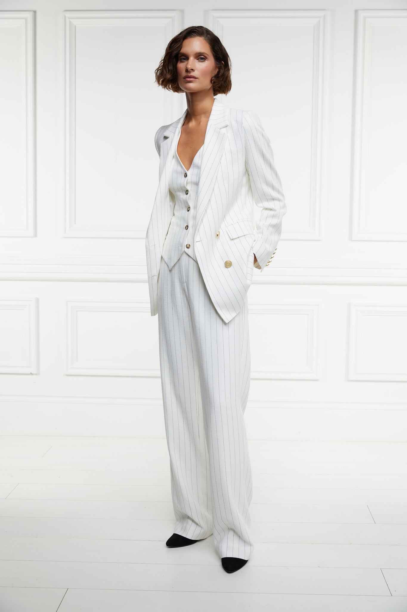 Hampton Waistcoat (Oyster Linen Pinstripe)