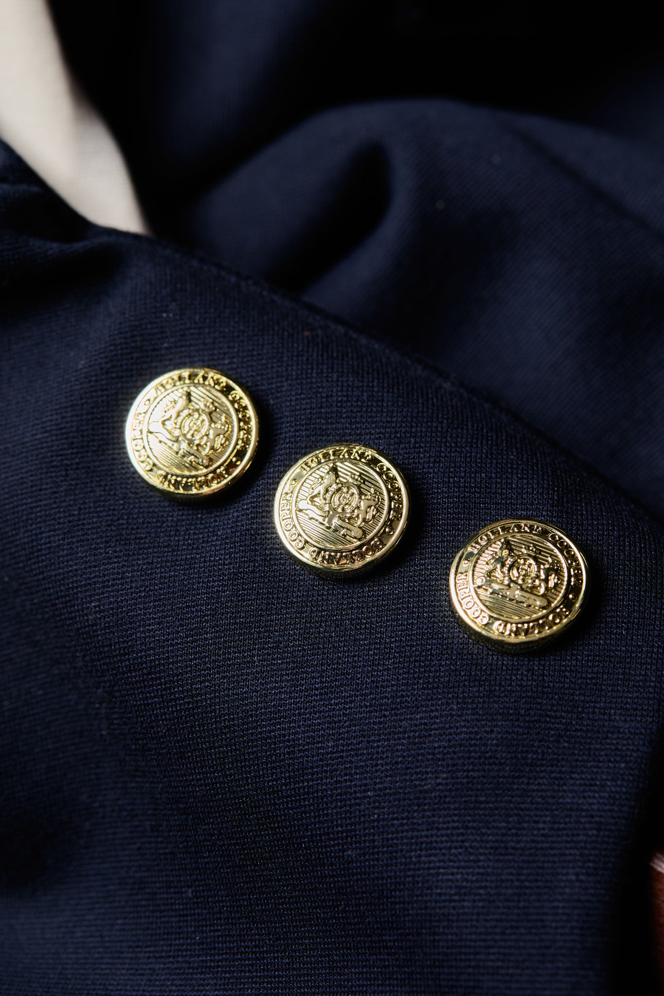 Crafted from our luxuriously soft interlock fabric, this all-in-one silhouette features our signature architectural shoulders and is adorned with refined HC gold hardware detailing.