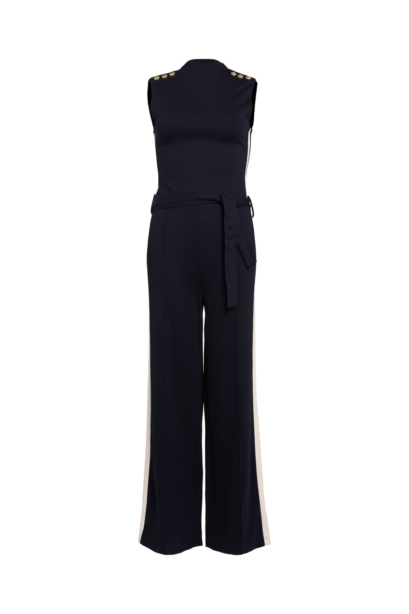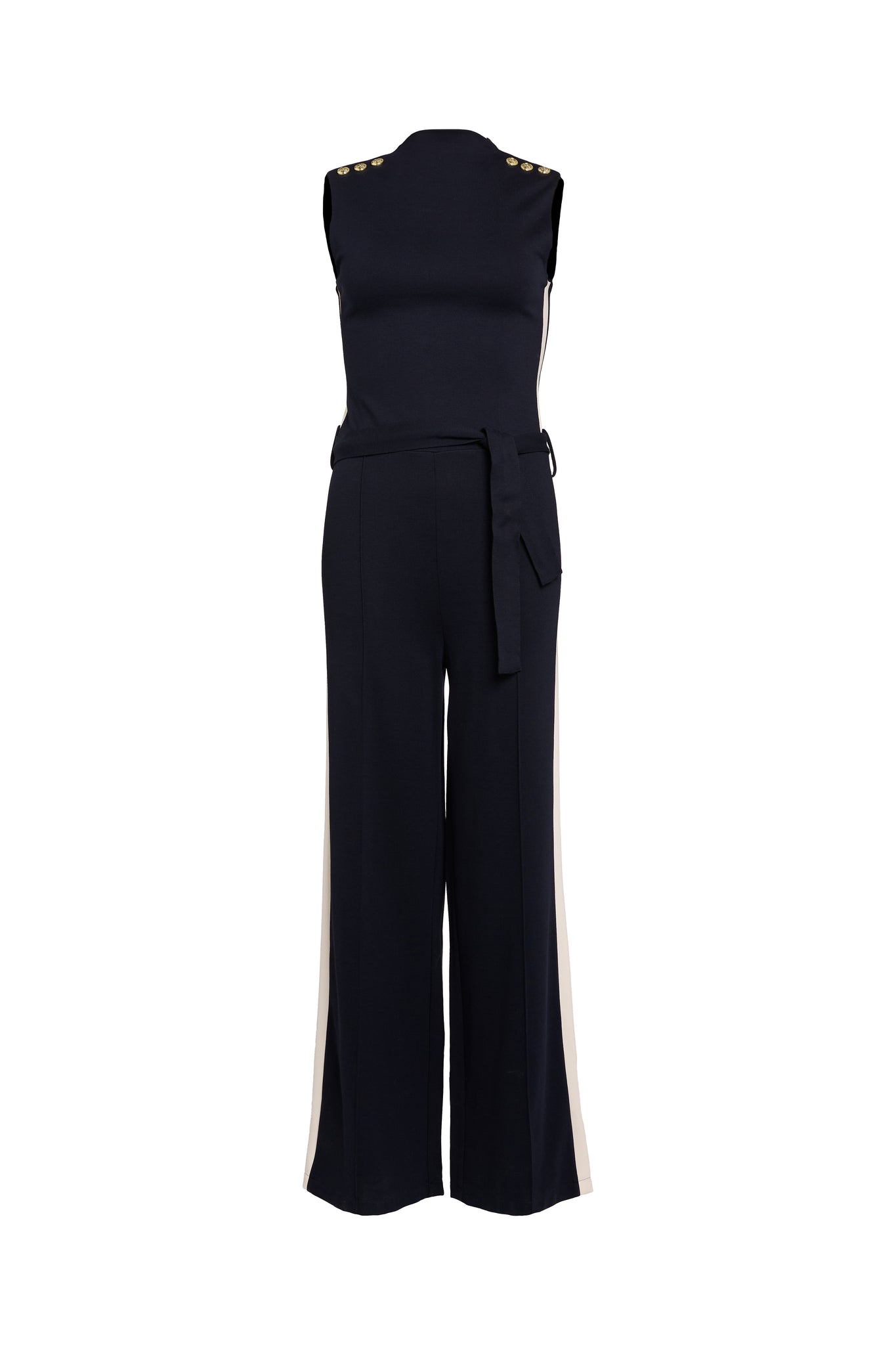 The high neckline and centre-back zip create a sleek profile, while the wide-leg cut and tailored pleats offer a flattering, elongated silhouette. Thoughtfully designed with invisible hip pockets for practicality without compromising on style.