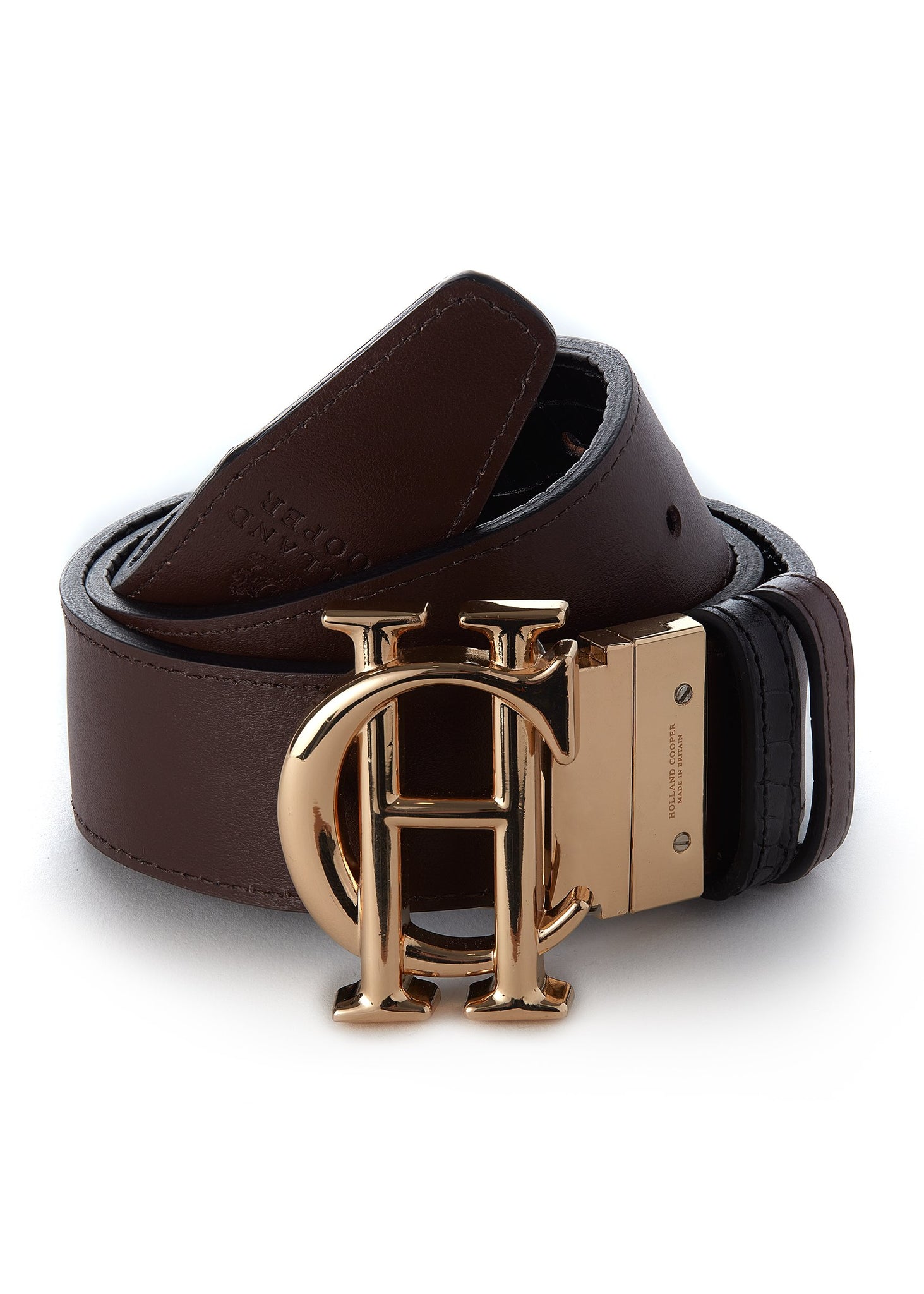 This belt is proudly made in England. Created to deliver the ultimate luxury in styling with a double colour availability with our interchangeable leather. We have provided two belt loops to ensure you can pick depending on which side of the belt you choose! Created using sumptuously soft leather and a gold plated Holland Cooper buckle, this prestigious British designed accessory is a necessary addition to your every day style. Visit Size & Fit to see specific belt sizes.