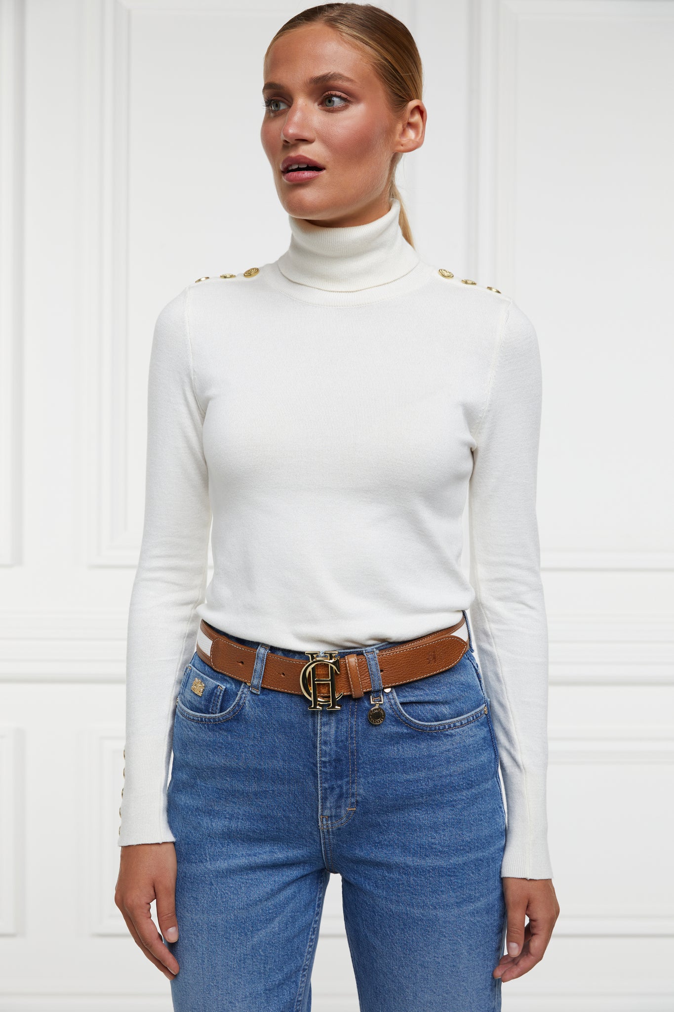 Crafted by hand with meticulous attention to detail, this belt is a true embodiment of British craftsmanship. Featuring our iconic HC buckle in classic gold, the canvas window detail adds a modern touch, creating a perfect balance between tradition and trend. With a tan nubuck lining and HC embossing to the end.