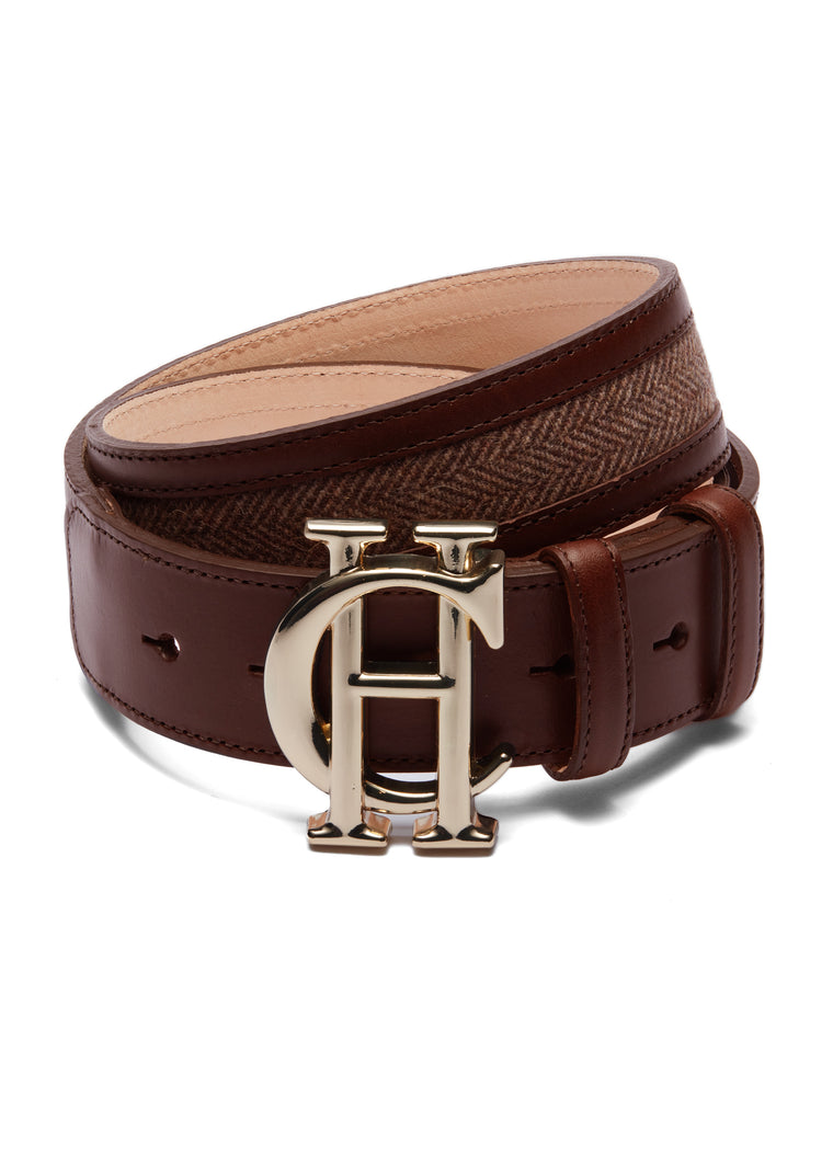 Made in the UK from a soft and supple leather, this belt is the perfect statement to any outfit. Designed with a leather base with a fabric insert through the centre and finished with our classic HC buckle. Beautifully hand finished with traditional techniques & embossed with HC branding.