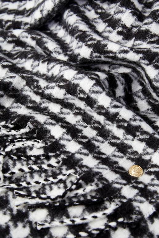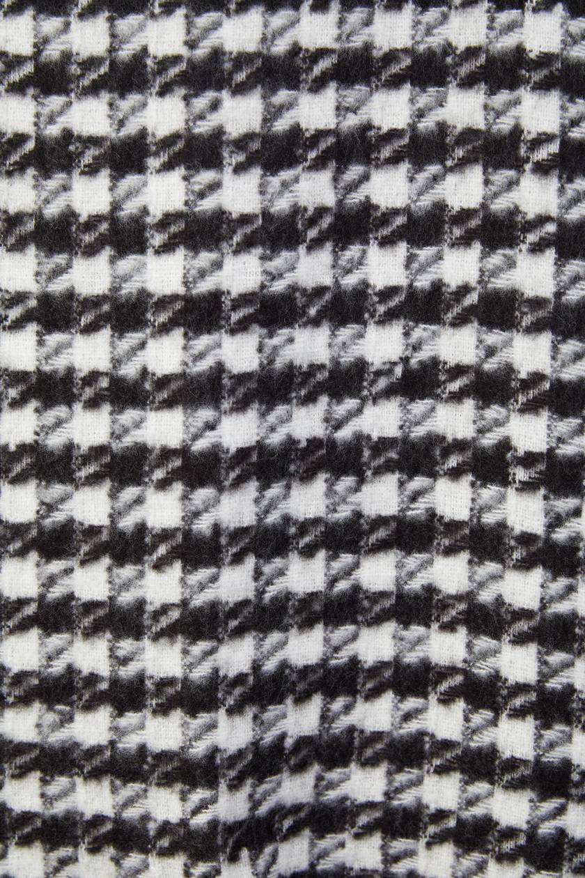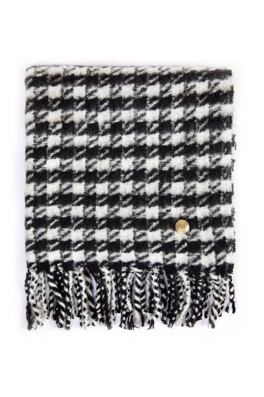 An essential accessory for colder climes, the wool blend Houndstooth Scarf fuses function with understated style. The brushed silhouette is complete with fringe trims, adding an elegant edge to every cold weather ensemble.