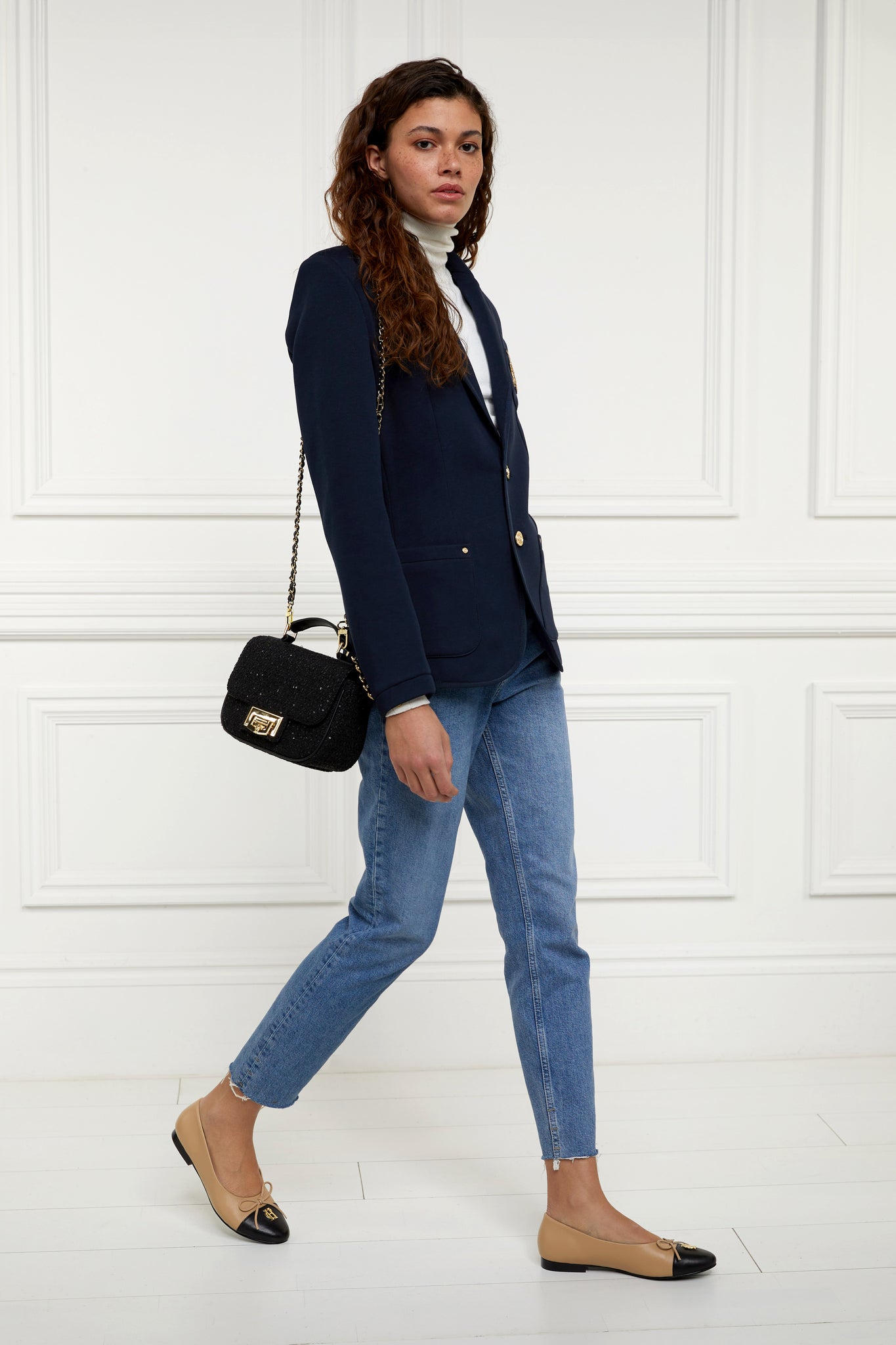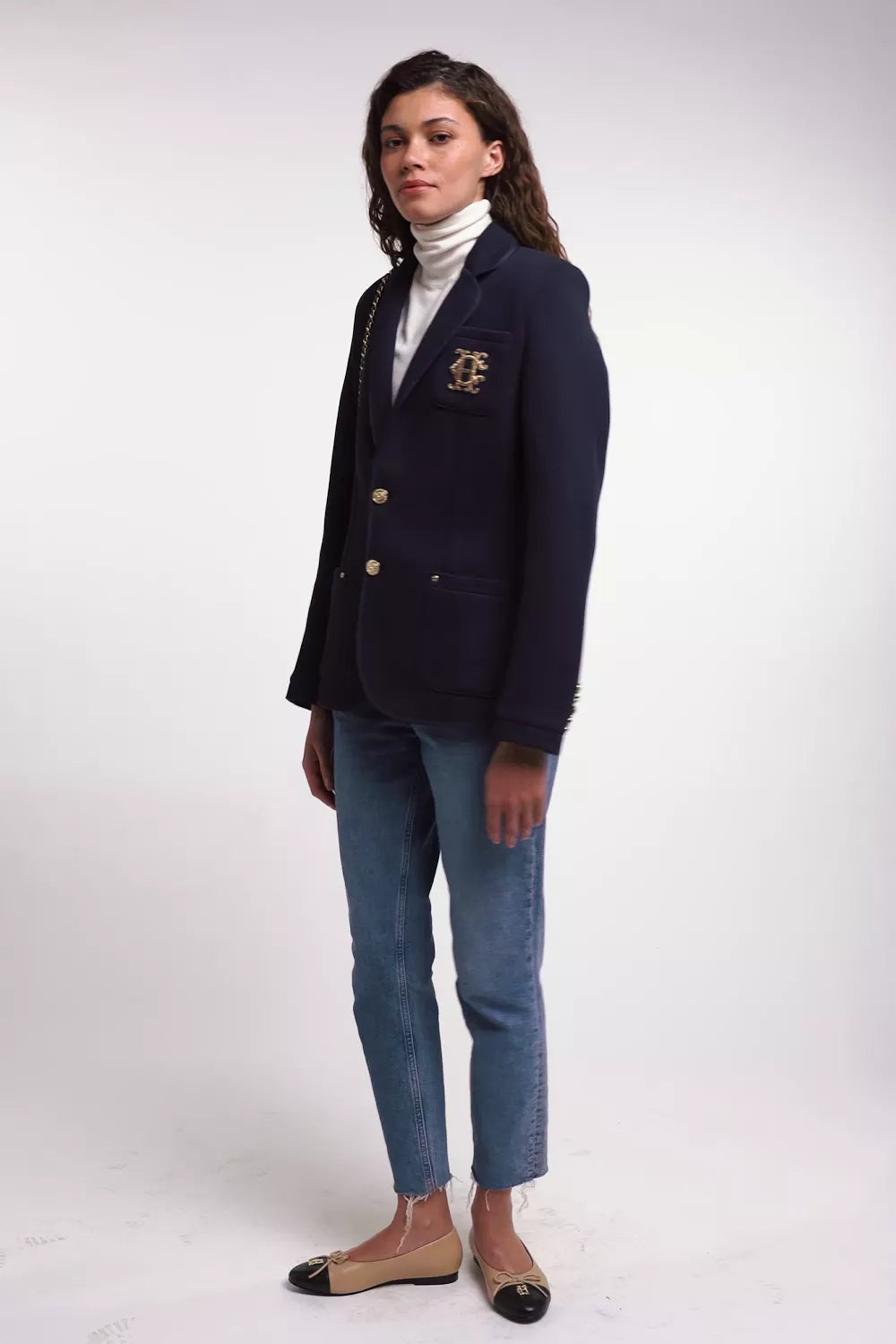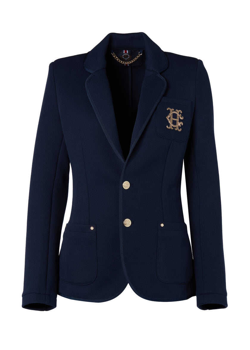 Designed with a tailored silhouette, the Henley Blazer has been designed with an elegantly slim fit and vintage-inspired aesthetic. Created from a heavyweight knitted shell fabric, this blazer has been beautifully characterised by our iconic handmade HC badge on the chest pocket. With an elegant two-button closure, the traditional piping adds a preppy and chic touch. Detailed with patch pockets and buttoned cuffs.