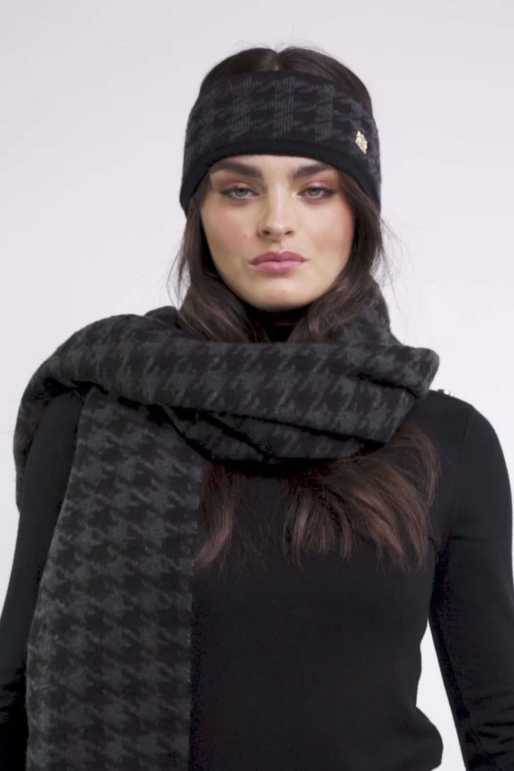 Created from a super-soft yarn with a traditional Houndstooth design, and detailed with our iconic rivet. This headband knit is a timeless piece for your winter wardrobe.