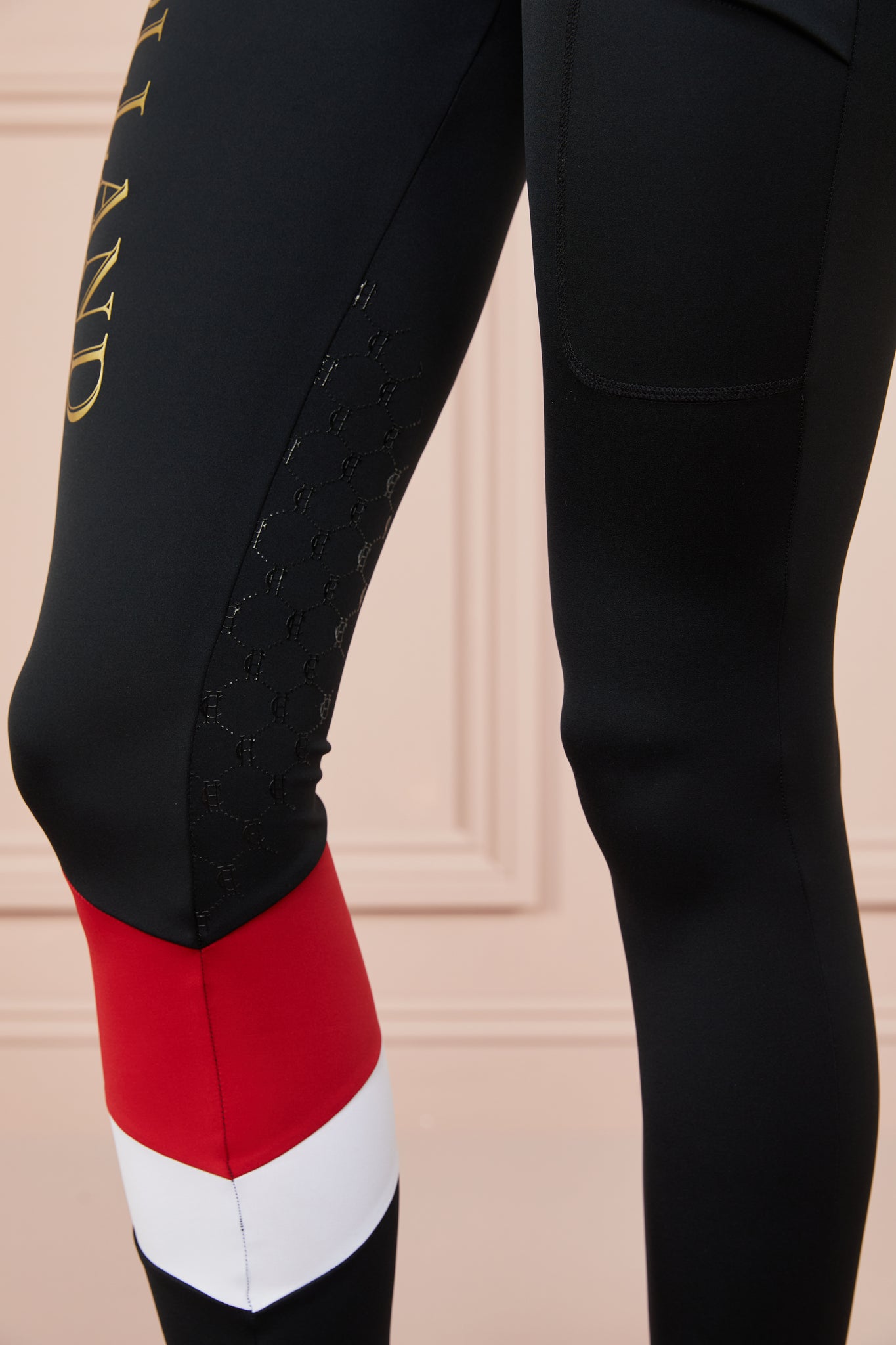 - HC monogram grip to inner thighs for increased control in the saddle