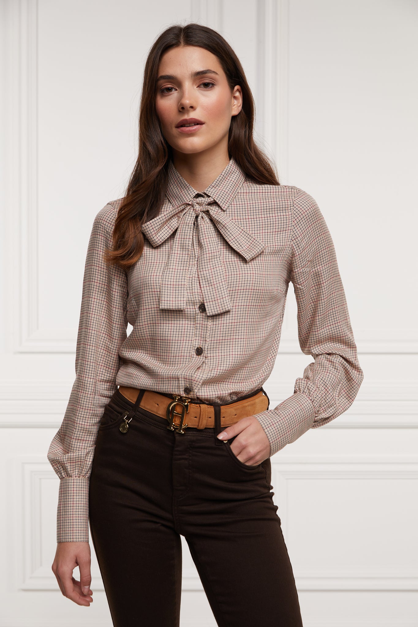 Both modern & versatile, this piece has been designed with a relaxed, yet tailored fit. Created from a beautiful lightweight fabric with delicate puff sleeves and statement pussybow collar. Featuring our classic country checks with horn buttons to each cuff, this shirt is perfect for adding to your country wardrobe.