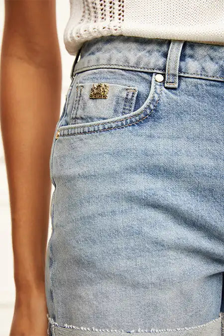 Designed with a vintage style and flattering fit, our first-ever denim shorts have been created from a comfortable stretch denim. Designed with a high rise waist and 5 pockets, the raw edge hemline makes for a classic and laid back style. Detailed with our iconic hardware.