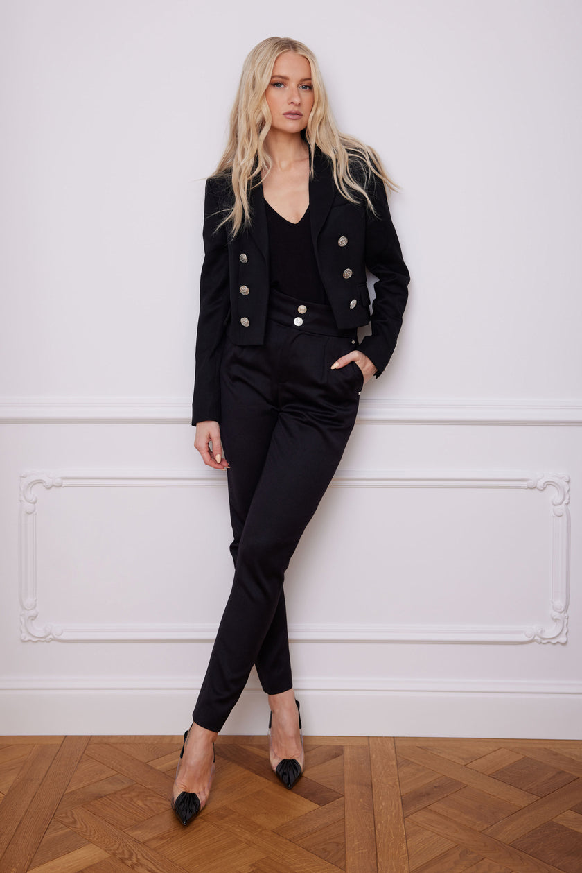 Make a statement this season in our meticulously tailored Peg Trousers for a polished, contemporary look that will effortlessly transition you from day to night. This high-waisted design has two single knife pleats implemented at the front of the trousers and are half lined for added comfort. Detailed with beautiful silver hardware for a luxurious touch.