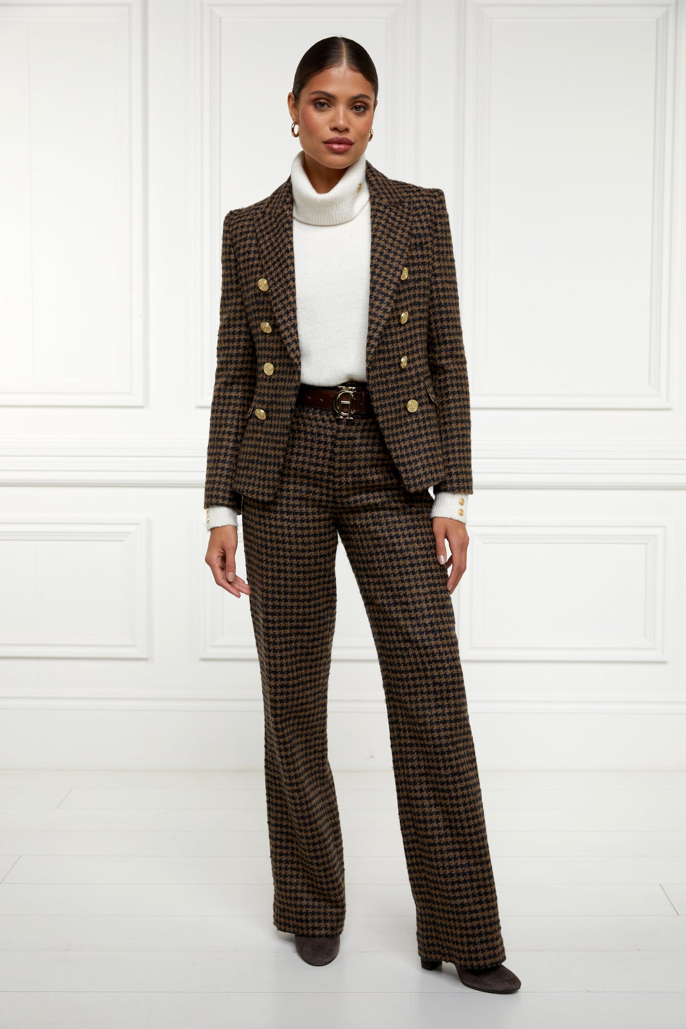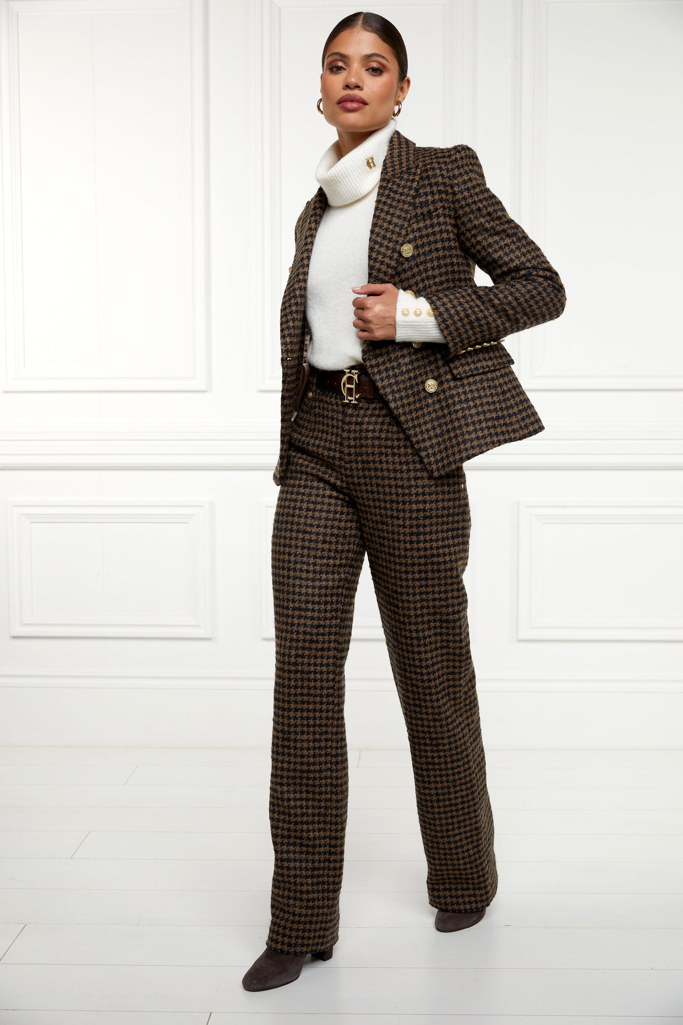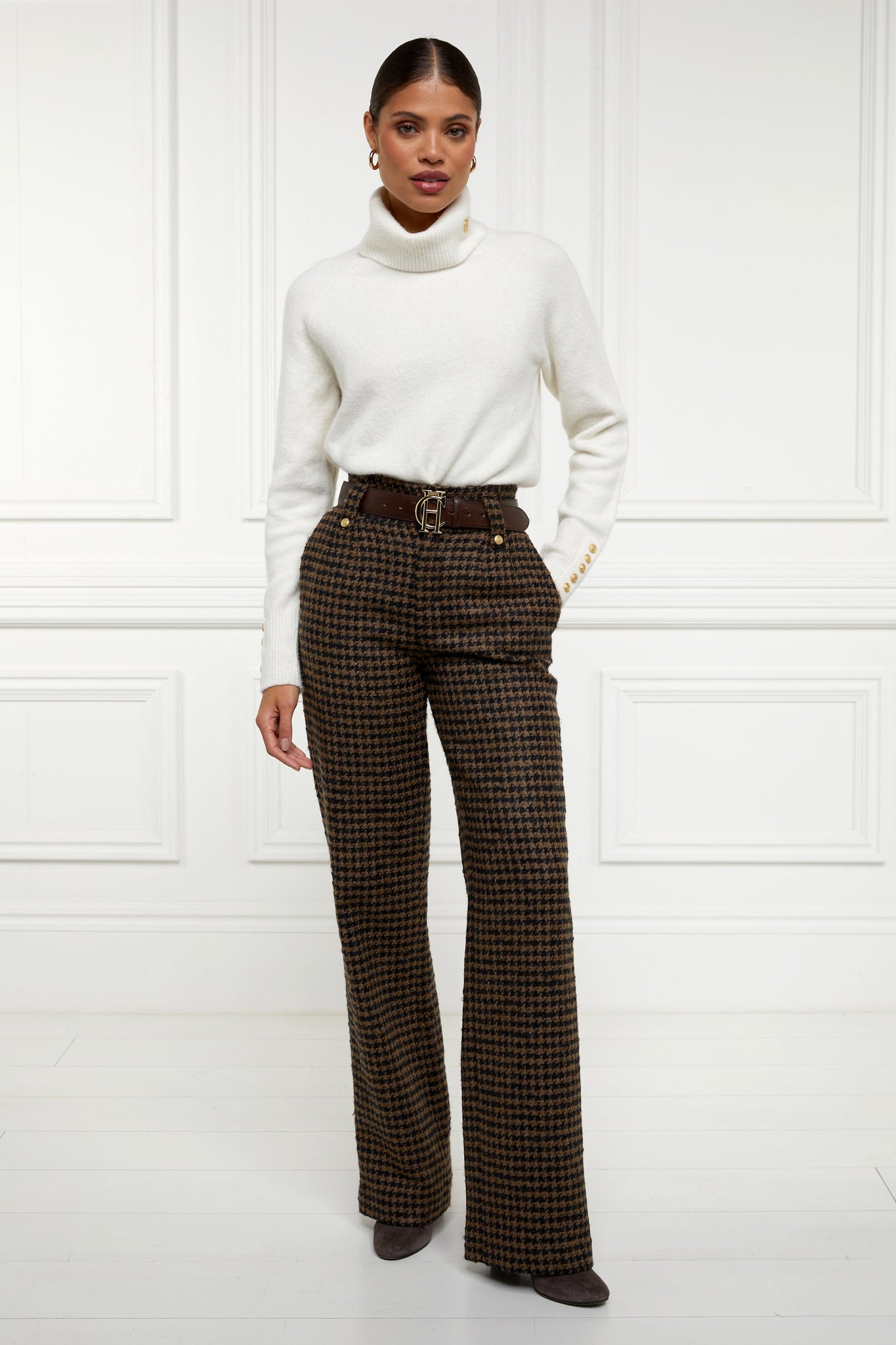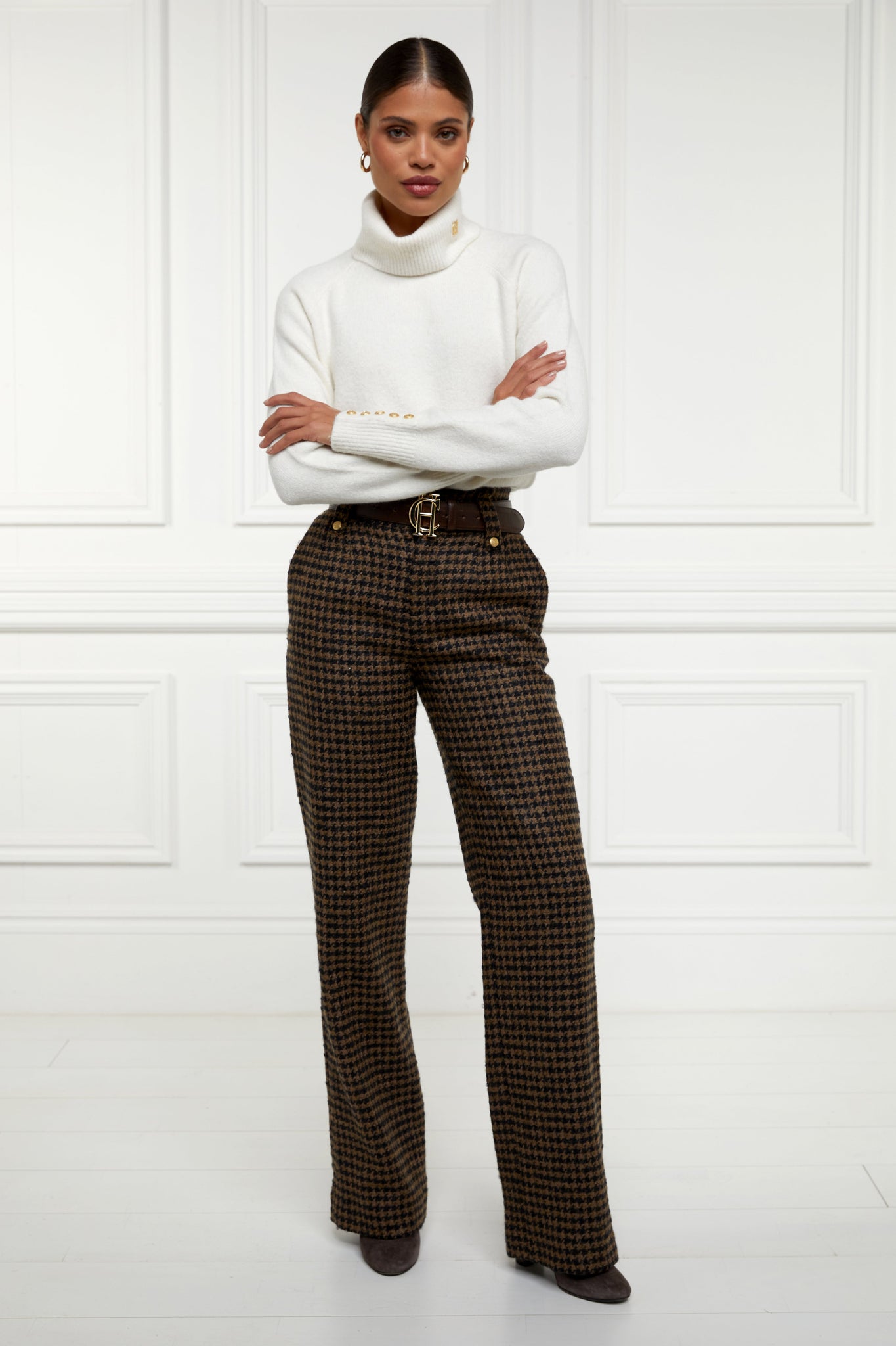Simple and refined, these straight-leg trousers are the perfect balance of smart and casual that effortlessly take you from day to night. Made from a luxurious wool blend that's fully lined, these trousers sit high on the waist with a wide waistband to create a flattering silhouette that suits all body shapes. Featuring two large side pockets and adorned with our iconic gold hardware for an added touch of luxury. These trousers have been hand cut and made in England using wool woven in the UK.