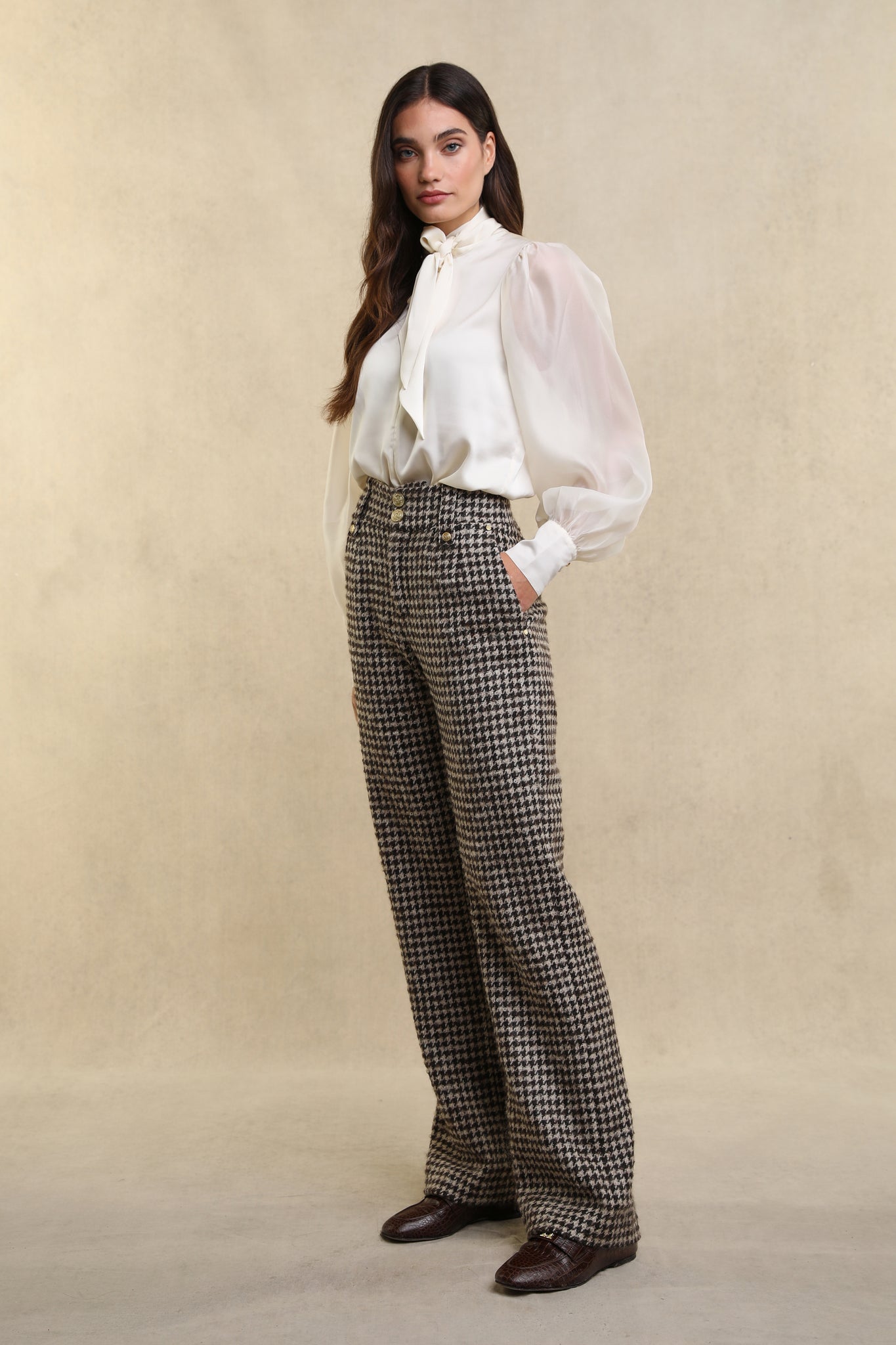 Simple and refined, these straight-leg trousers are the perfect balance of smart and casual that effortlessly take you from day to night. Made from a luxurious wool blend that's fully lined, these trousers sit high on the waist with a wide waistband to create a flattering silhouette that suits all body shapes. Featuring two large side pockets and adorned with our iconic gold hardware for an added touch of luxury. These trousers have been hand cut and made in England using wool woven in the UK.