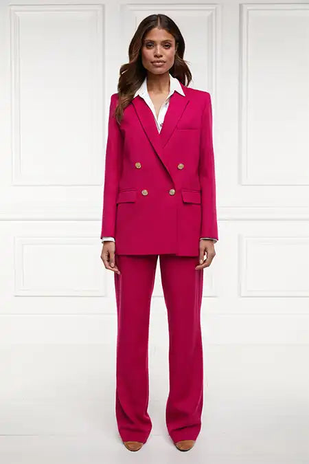 Simple and refined, these straight-leg trousers are the perfect balance of smart and casual that effortlessly take you from day to night. Made from a luxurious wool blend that's fully lined, these trousers sit high on the waist with a wide waistband to create a flattering silhouette that suits all body shapes. Featuring two large side pockets and adorned with our iconic gold hardware for an added touch of luxury. These trousers have been hand cut and made in England using wool woven in the UK.