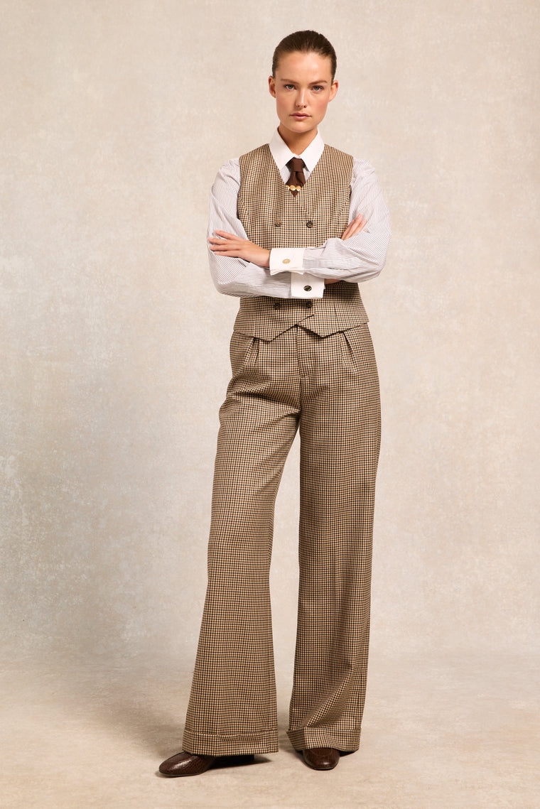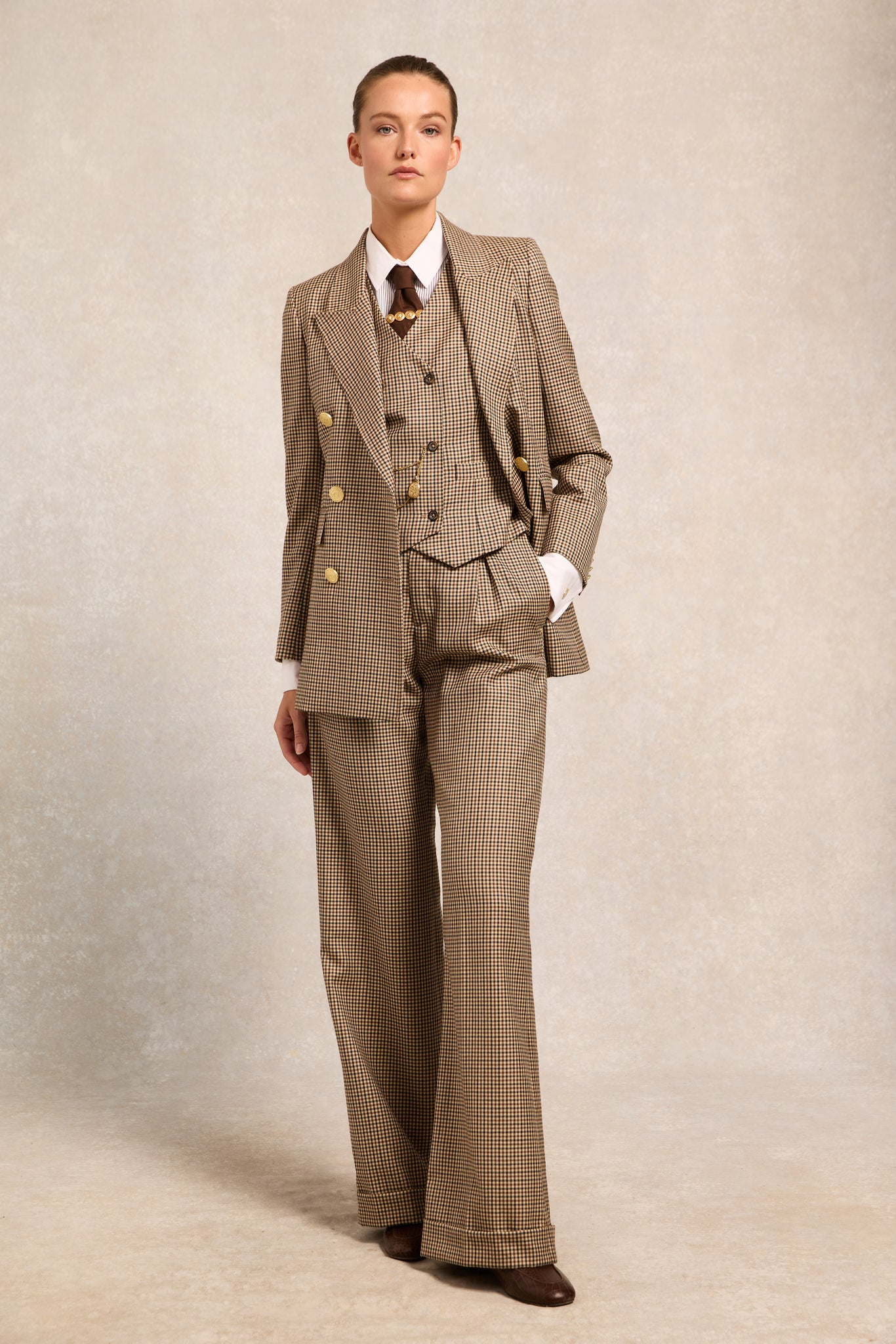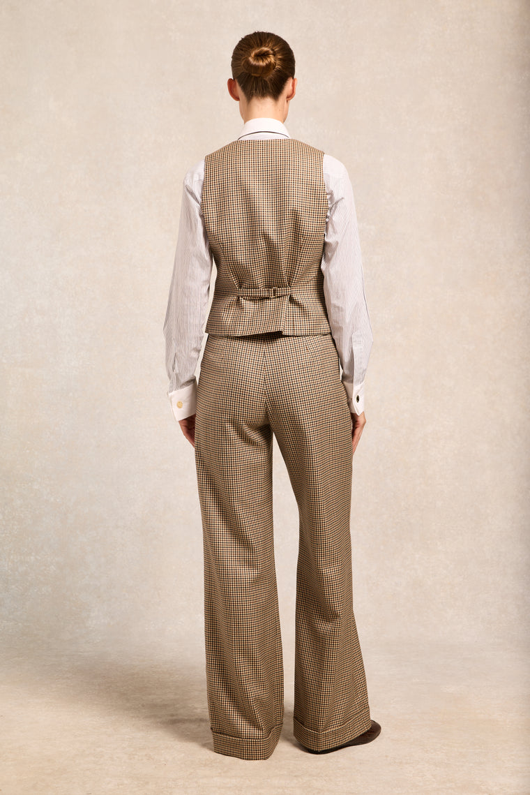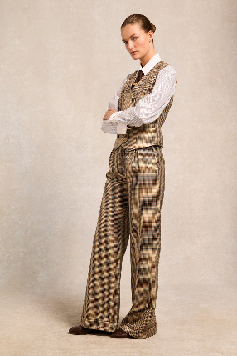 Simple and refined, these wide-leg trousers are the perfect balance of smart and casual that effortlessly take you from day to night. Made from a luxurious wool blend that's fully lined, these trousers sit high on the waist with a wide waistband to create a flattering silhouette that suits all body shapes. Featuring two large side pockets and adorned with our iconic gold hardware for an added touch of luxury. These trousers have been hand cut and made in England using wool woven in the UK.
