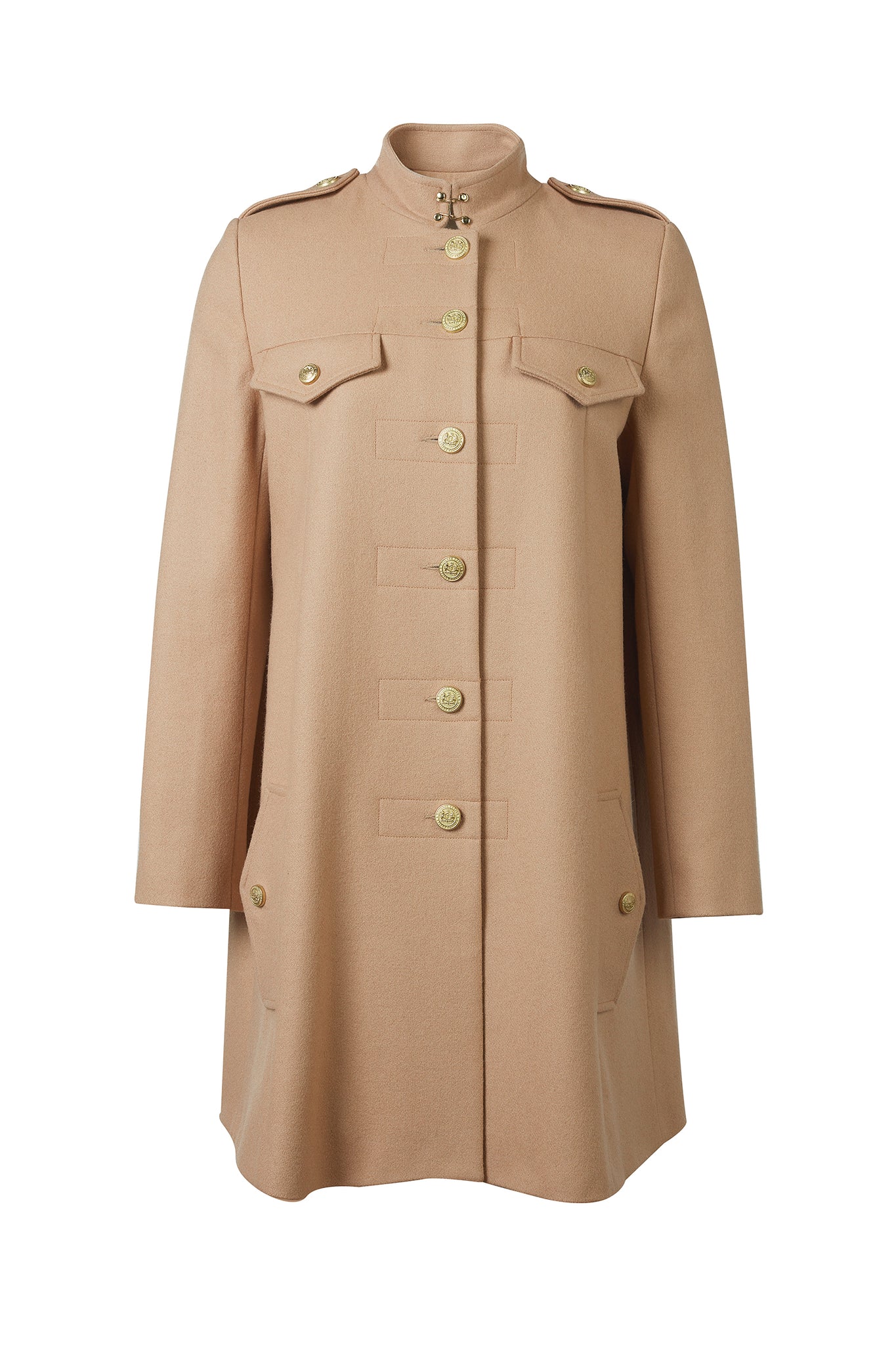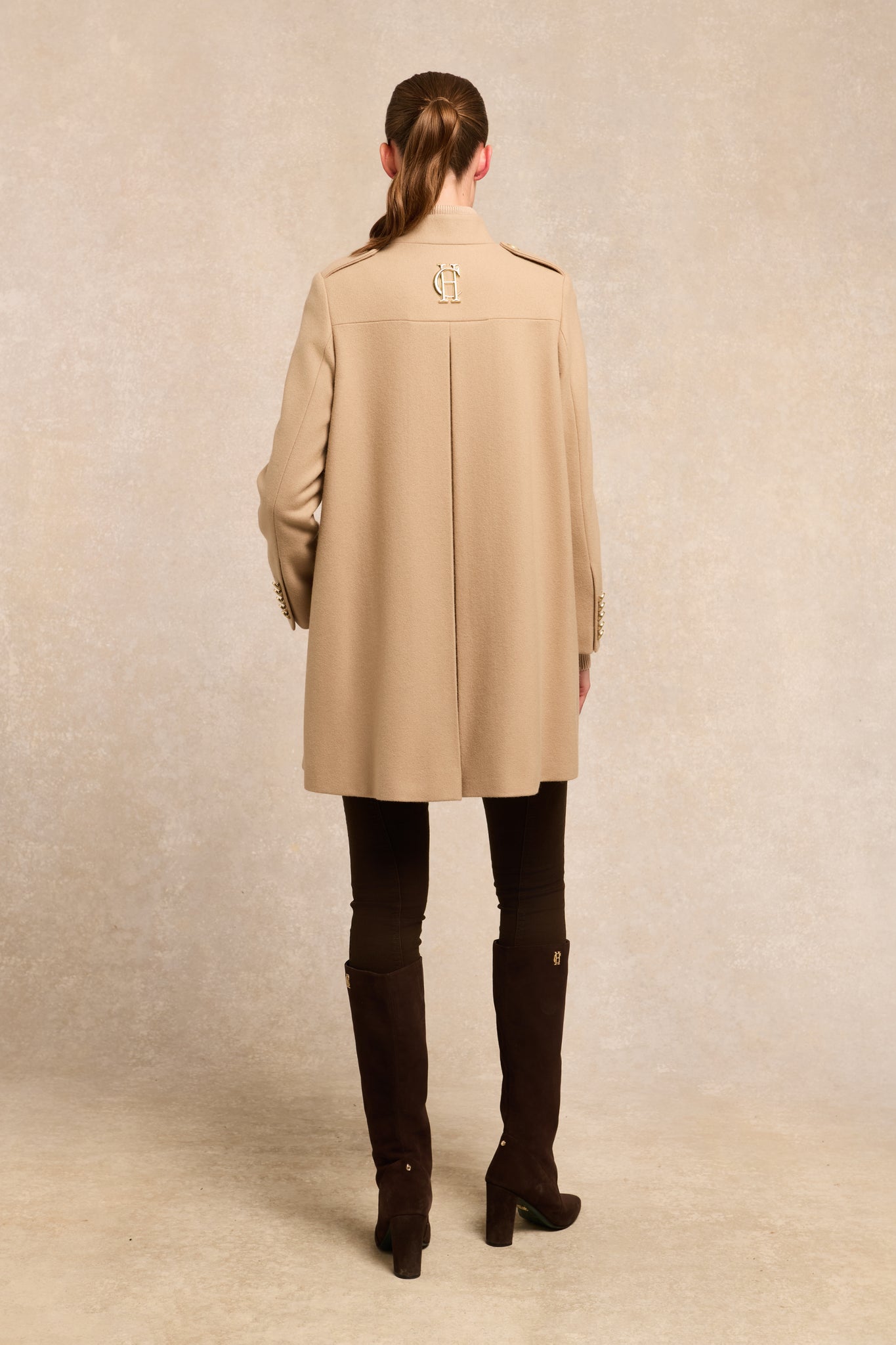 A hybrid between a cape and a jacket, the Highbury Cape has been entirely handmade in the UK. Designed to fit like a cape with an easy fit and elegant drape, the tailored sleeves create a sophisticated silhouette. With a wide inverted box pleat with side-entry pockets, the piece has been detailed with a high neck hook and eye closure.