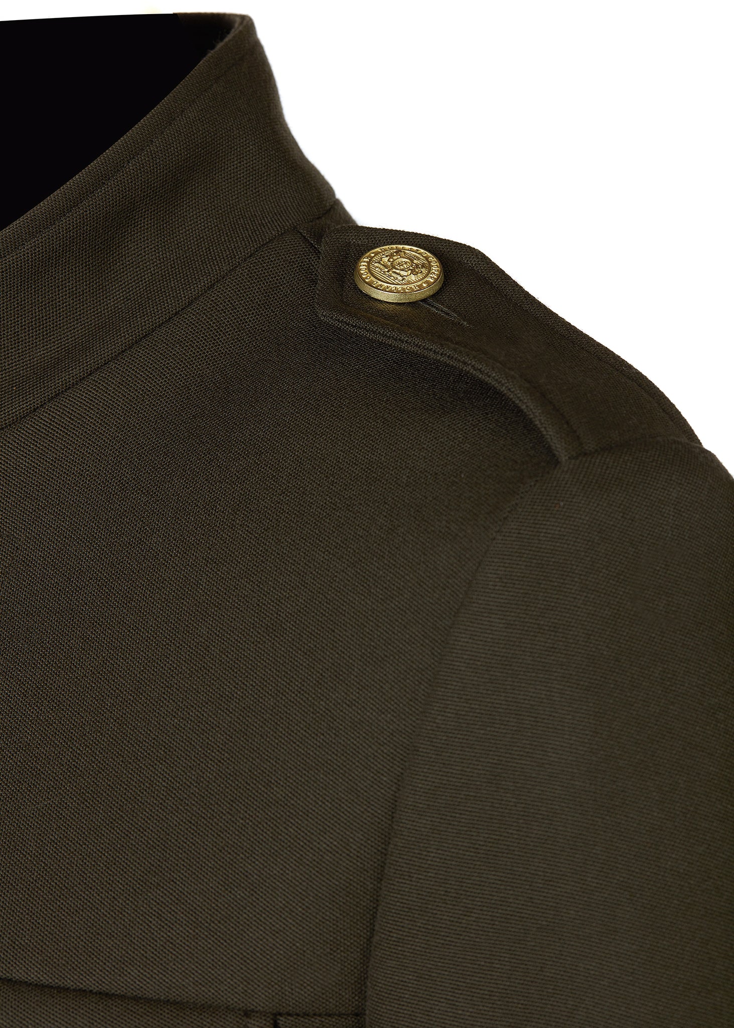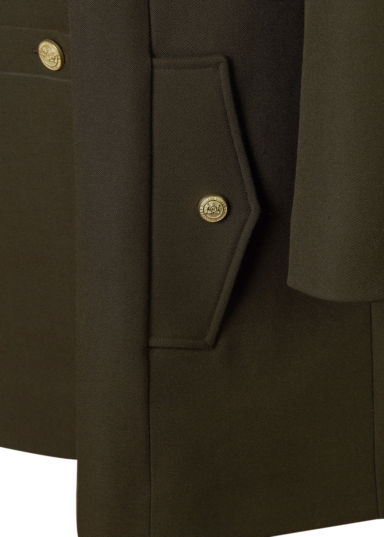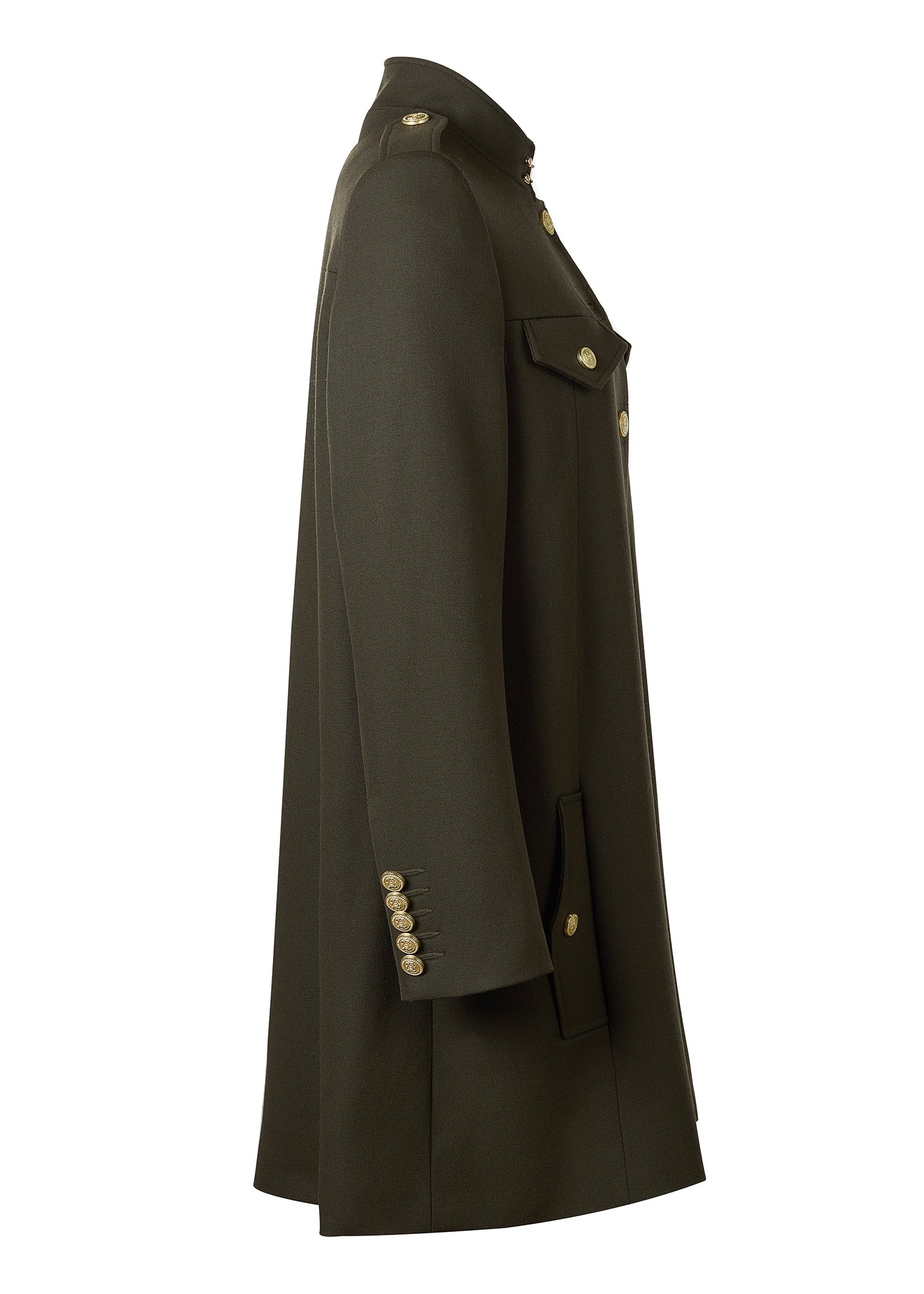 A hybrid between a cape and a jacket, the Highbury Cape has been entirely handmade in the UK. Designed to fit like a cape with an easy fit and elegant drape, the tailored sleeves create a sophisticated silhouette. With a wide inverted box pleat with side-entry pockets, the piece has been detailed with a high neck hook and eye closure.