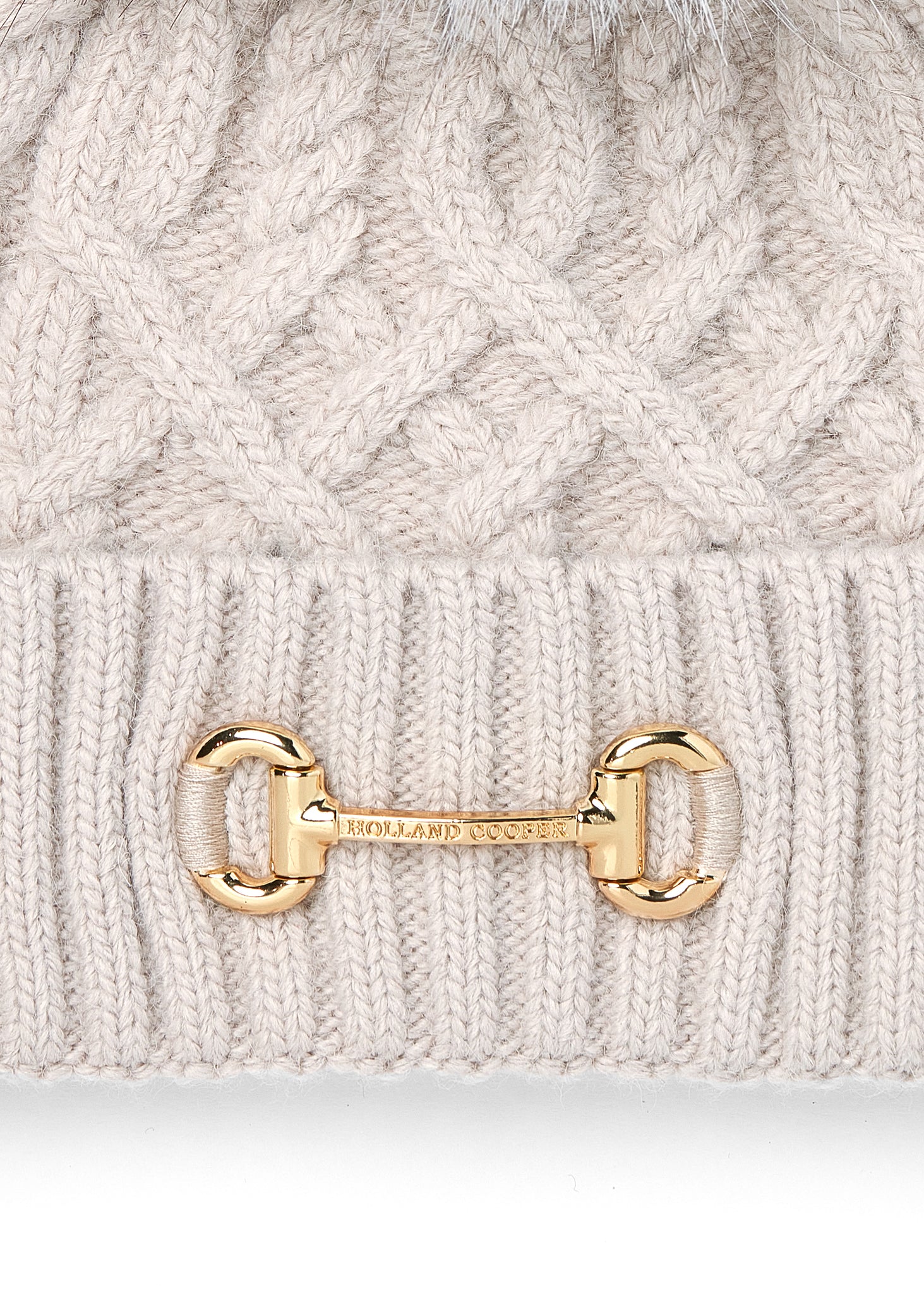 Introducing the Horsebit Bobble Hat, a stunning addition to our knitted accessories collection. Crafted from a premium thick wool blend, this hat features an elegant cable knit design complemented by a branded horse bit gold hardware. The signature large pom-pom adds a playful touch, while the warm natural colours ensure a timeless appeal. The Horsebit Bobble Hat combines luxury with functionality, making it a perfect choice for your winter wardrobe.