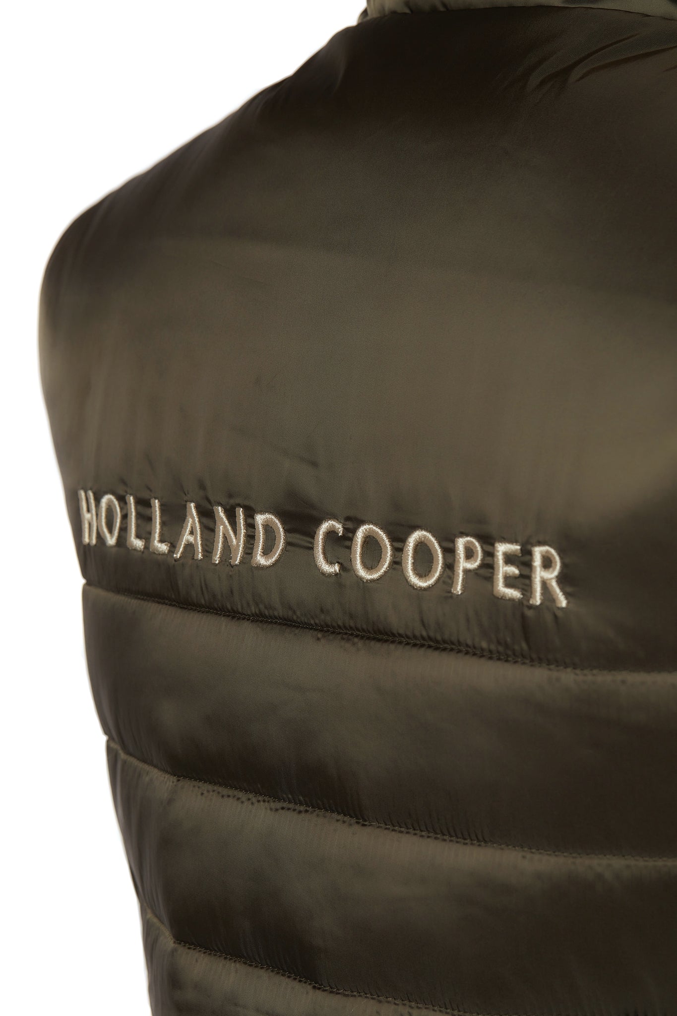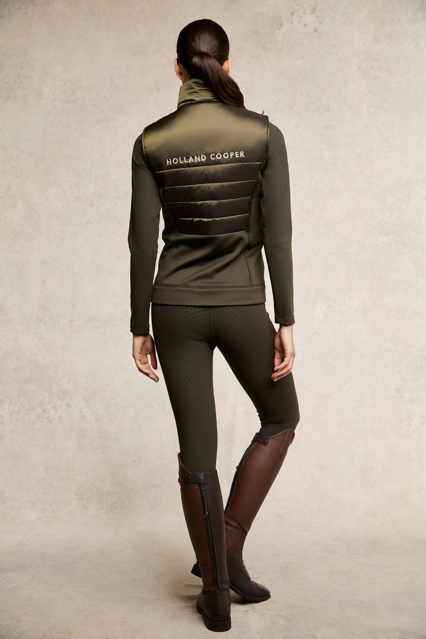 This gilet features a padded upper filled with Sorona™ for superior warmth. The high-density poly-nylon shell fabric ensures durability, while the performance jersey body enhances breathability and movement. Stay dry with waterproof zips on the front pockets and a coated zip closure. The high build embroidery on the back adds a touch of sophistication.