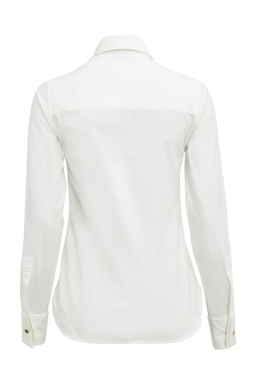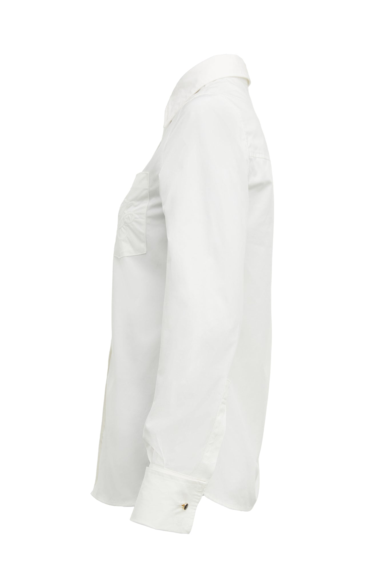 Our play on the classic white shirt, this piece has been created with all the details you would expect from a traditional piece of tailoring. Made from 100% cotton with a flattering slim fit through the body. With delicate monogram embroidery on the chest pocket and a subtle VM on the cuff, this shirt is an elevated everyday essential. Finished with a double cuff construction with elegant cufflink hardware.