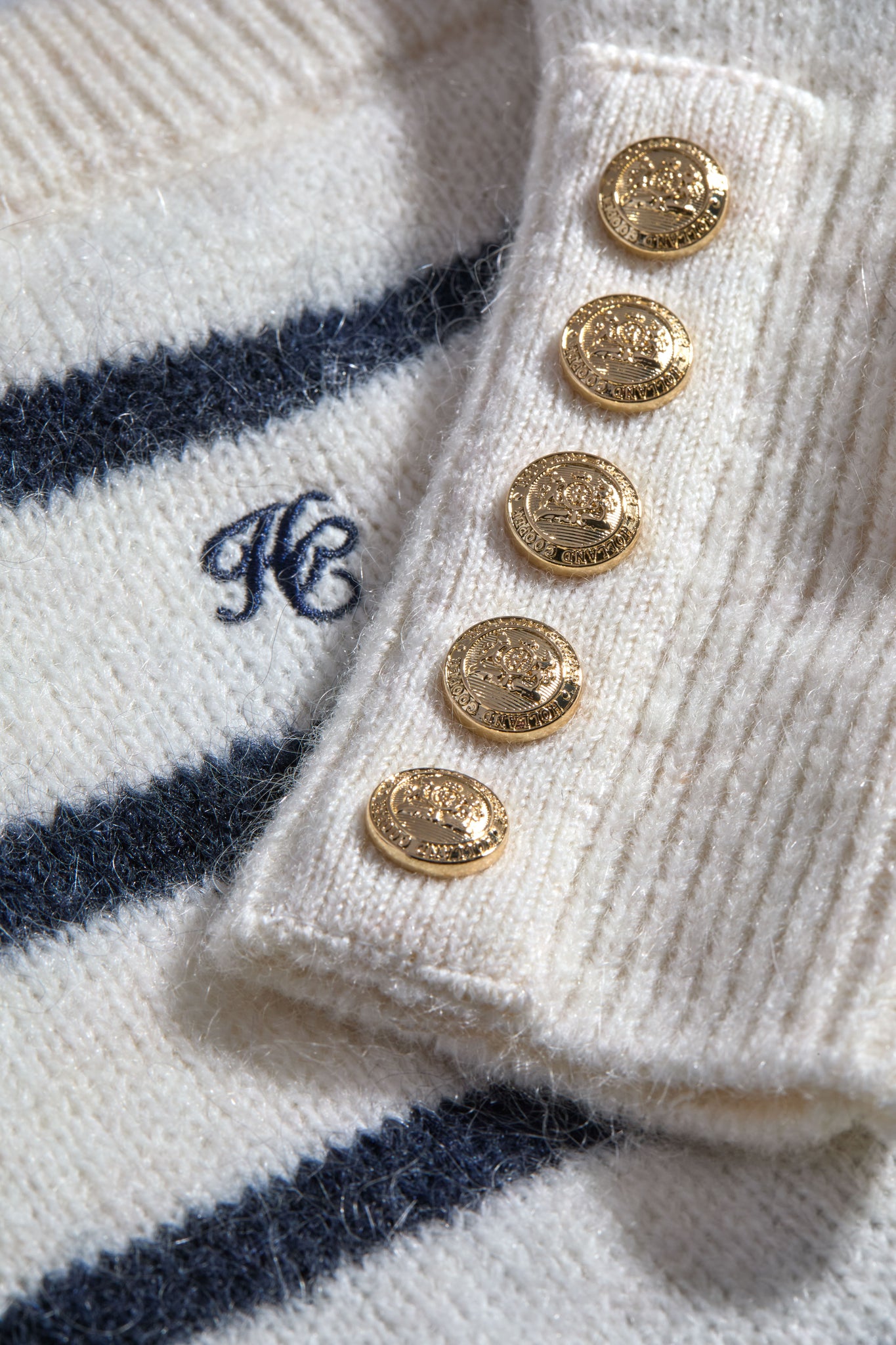 This slim-fitting sweater offers a sumptuous feel with a hint of stretch for a perfect fit. The design features chic blouson sleeves and ribbed cuffs accented with subtle hardware detailing, adding a touch of elegance. The standout feature is the delicate embroidery at the centre back, lending a unique and refined finish to this versatile piece. Perfect for layering or as a standalone statement, the Isla Crew Neck Knit is a timeless addition to your wardrobe.
