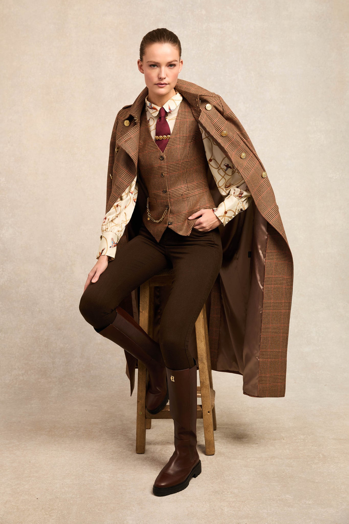 The Isla Shirt is a country twist on the classic shirt, featuring a tailored yet relaxed fit that exudes effortless sophistication. Highlighted by its statement high-volume sleeves and extra-long cuffs, this shirt is designed to stand out. The front is adorned with matching fabric-covered buttons, complemented by a signature gold crested button, embodying the distinctive elegance of Holland Cooper.