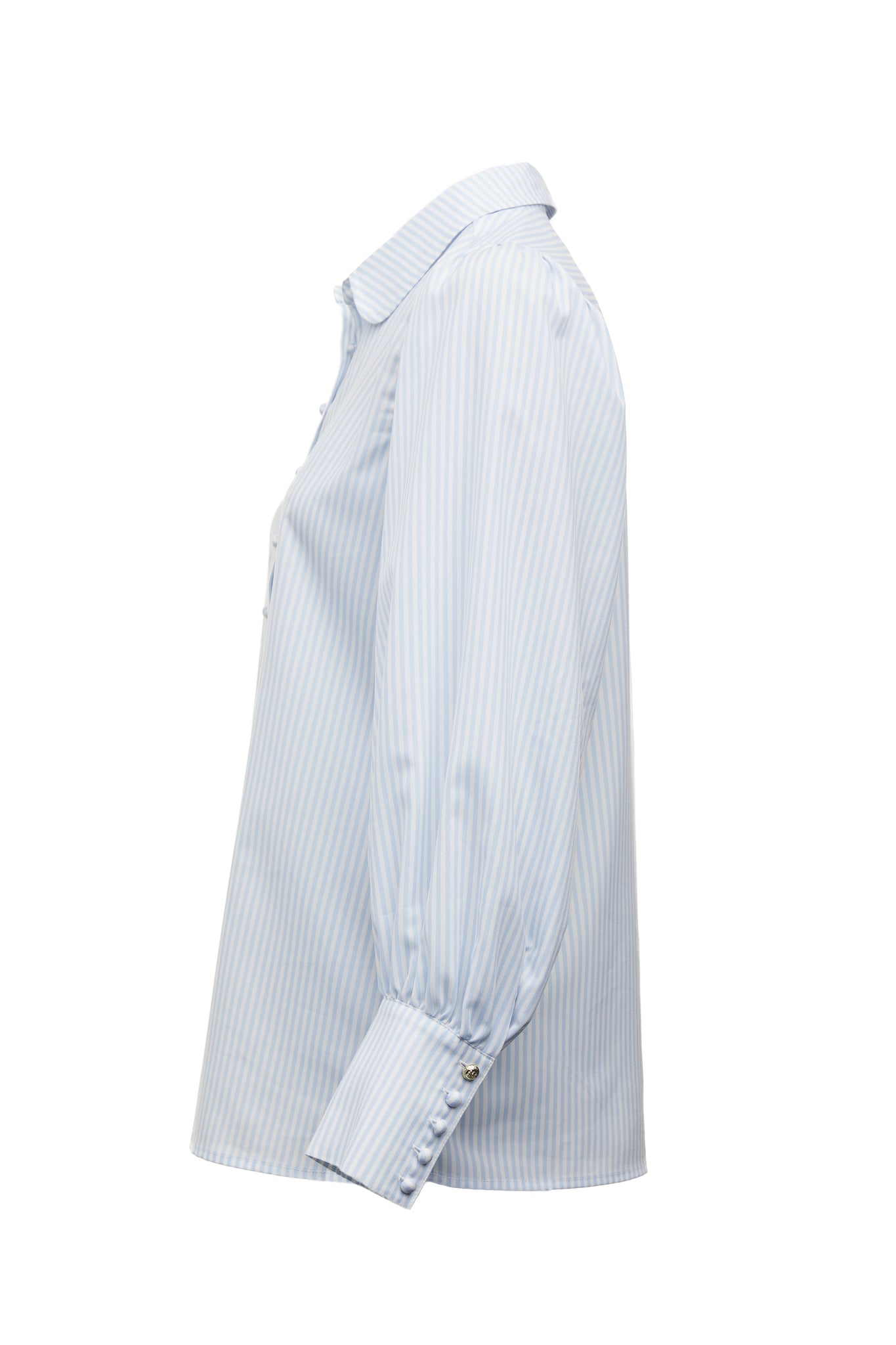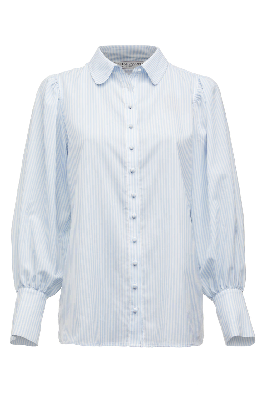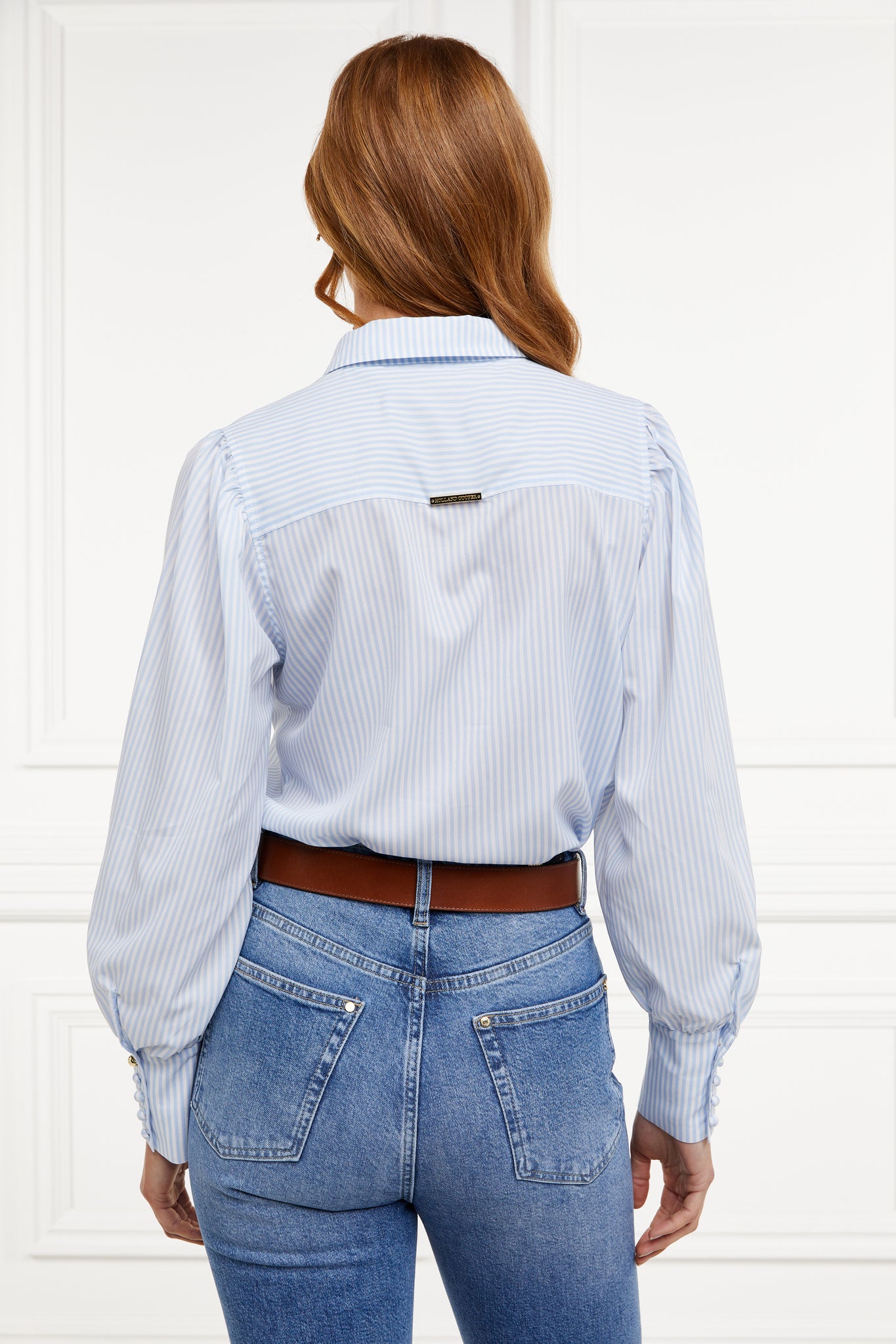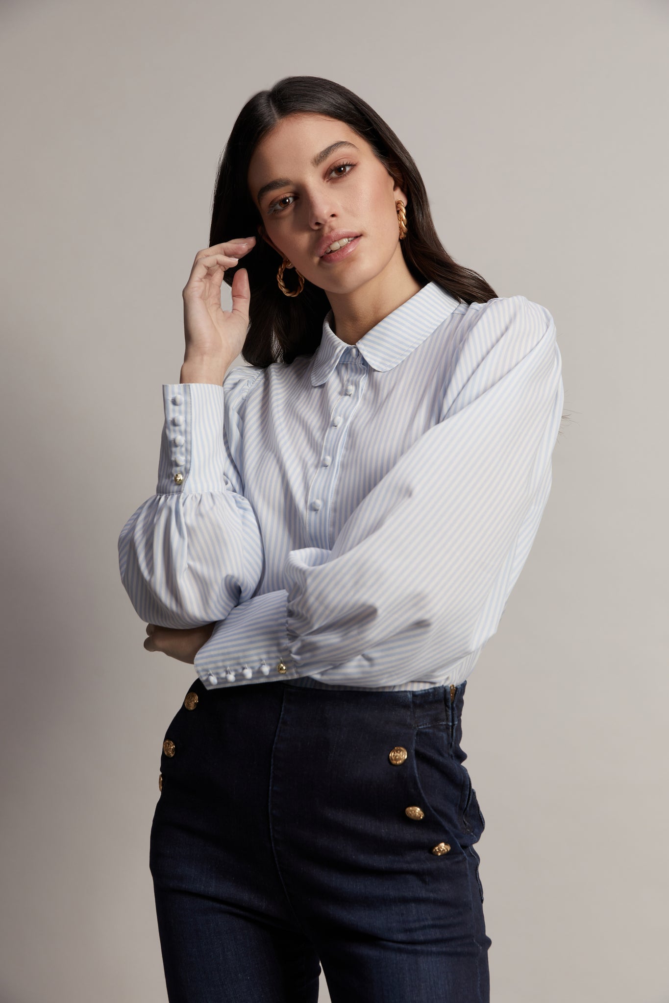 A play on the classic shirt, the Isla Shirt has a tailored yet relaxed fit with statement high volume sleeves and extra long cuffs. The shirt has matching fabric covered buttons down the front and a gold crested button for that signature Holland Cooper look. -
