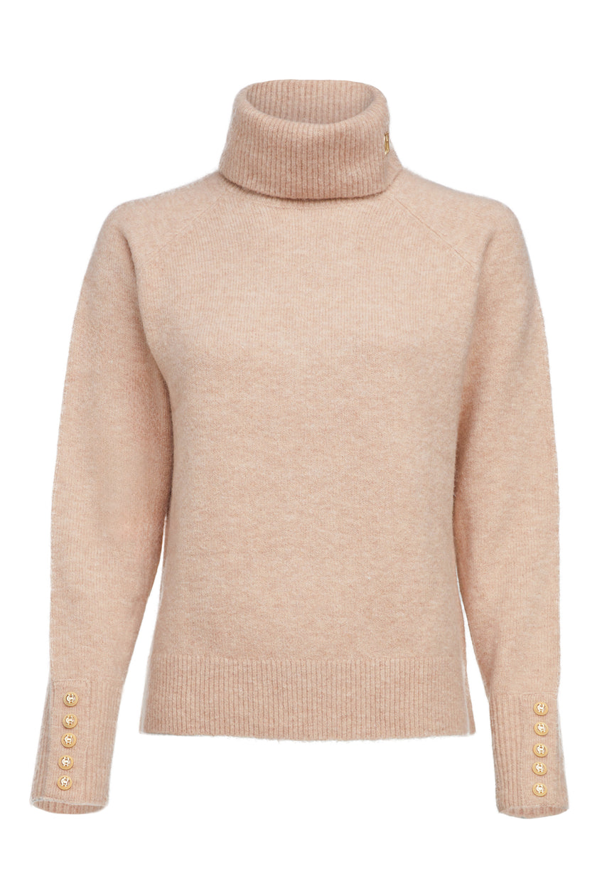 Crafted from a soft, textured wool, this knit has been designed with a relaxed fit and voluminous sleeves which elegantly pull into a ribbed cuff. Detailed with ribbed cuffs and hem with elegant rivet finishes.
