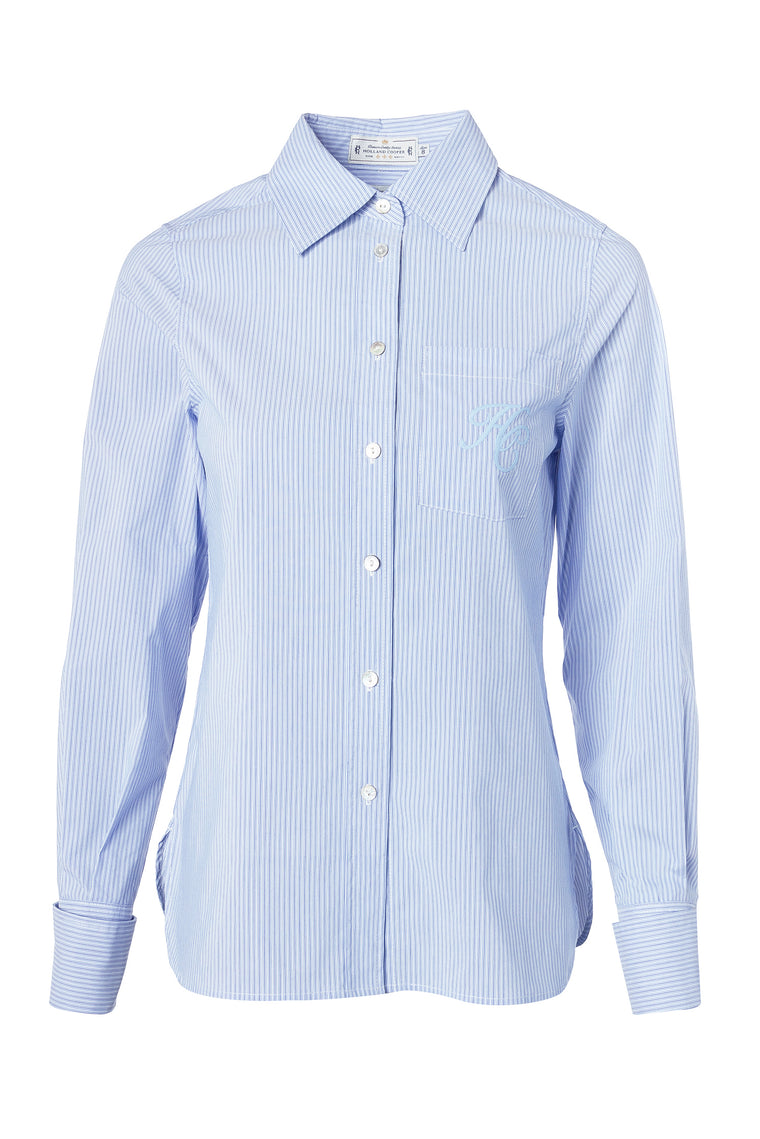 A modern twist on a classic favourite, this shirt has been crafted from crisp cotton poplin fabric. With a slim, tailored fit with double cuff construction, the classic collar shaping adds to the timeless elegance of this piece. Adorned with signature gold cuff links, engraved buttons on the front closure and elevated with elegant HC embroidery on the chest pocket.