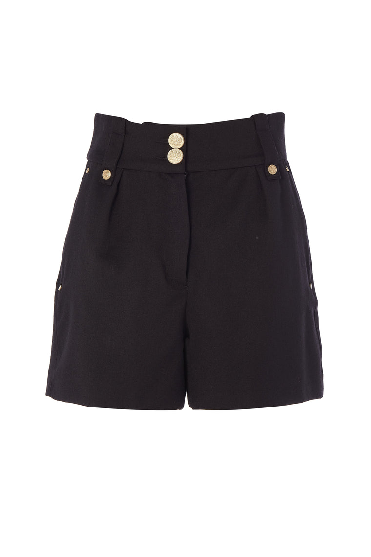 Combining timeless style with modern sophistication, the Luxe Tailored Shorts are realised in a sumptuously soft wool blend, with two single knife pleats and signature gold rivets. The high-waisted design provides a flattering silhouette that perfectly complements the female form, making it a must-have when composing a relaxed, yet sophisticated aesthetic.