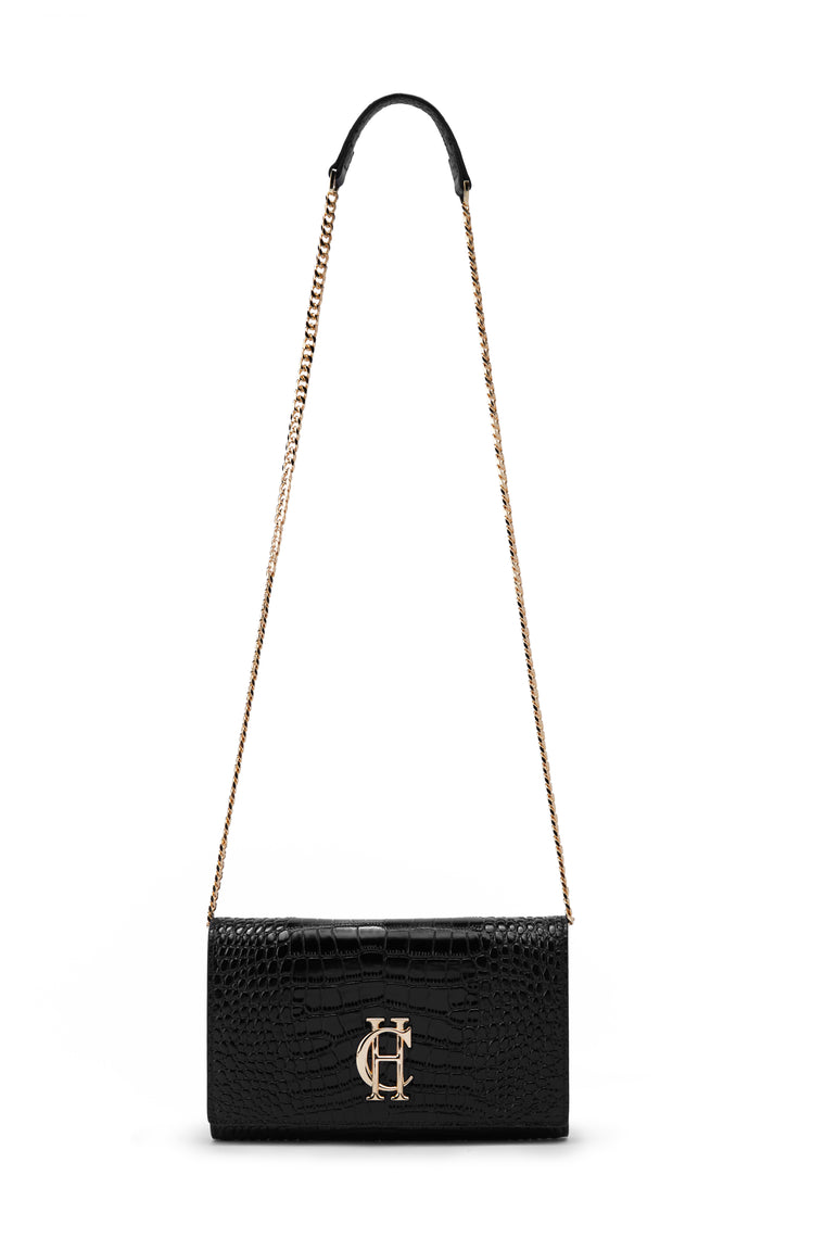 A timeless accessory centred around our HC hardware, this bag has been made from croc-embossed leather. With a detachable chain strap with a leather top panel, this bag sits comfortably on the shoulder or as a handheld piece. Fully branded with our iconic HC finishes, and internal zip pocket and card slots.