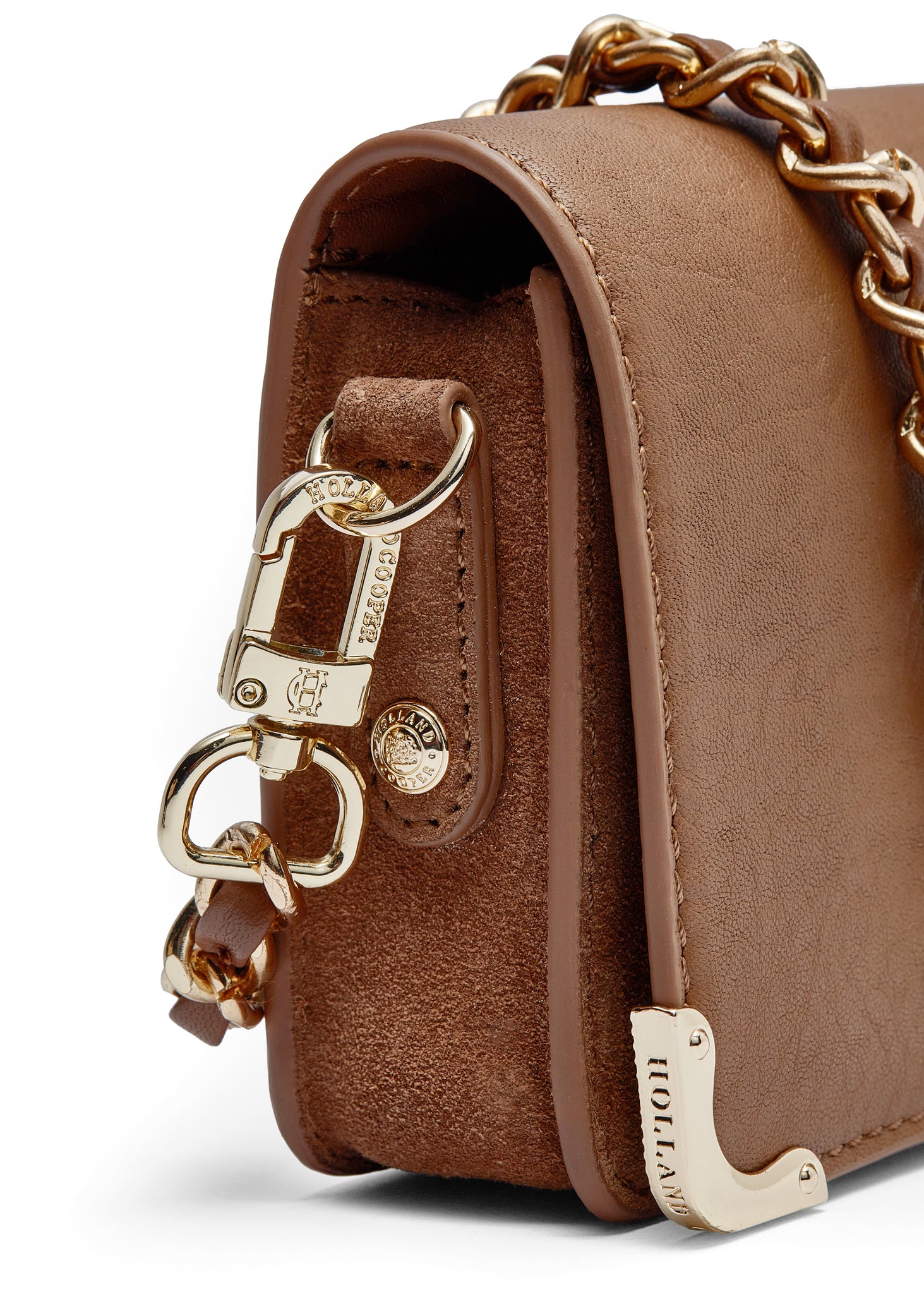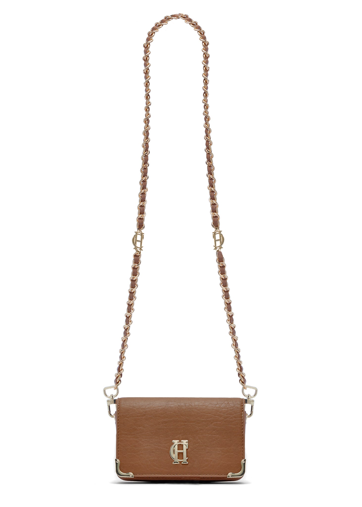 Handcrafted from the finest textured leather with a luxurious suede interior, this piece has been cleverly designed with a detachable chain strap so you can carry it as a clutch or drape it over your shoulder. With a petite construction, this feminine bag has been crafted with elegant, curved corners and elevated with our signature gold hardware. Finished with a magnetic closure and iconic HC monogram.