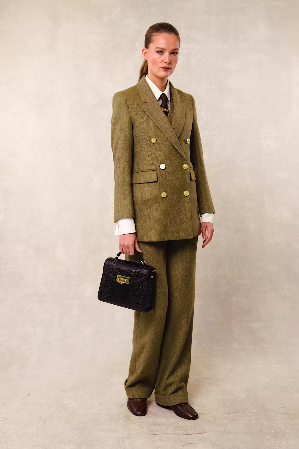 Inspired by country heritage, our Moss Green Tweed Double-Breasted Blazer is the epitome of refined tailoring.