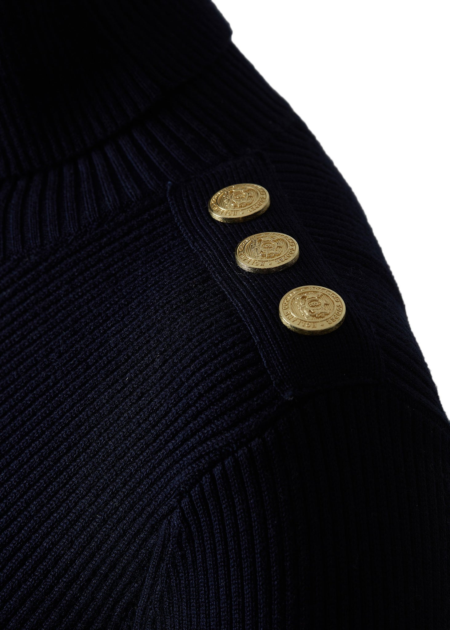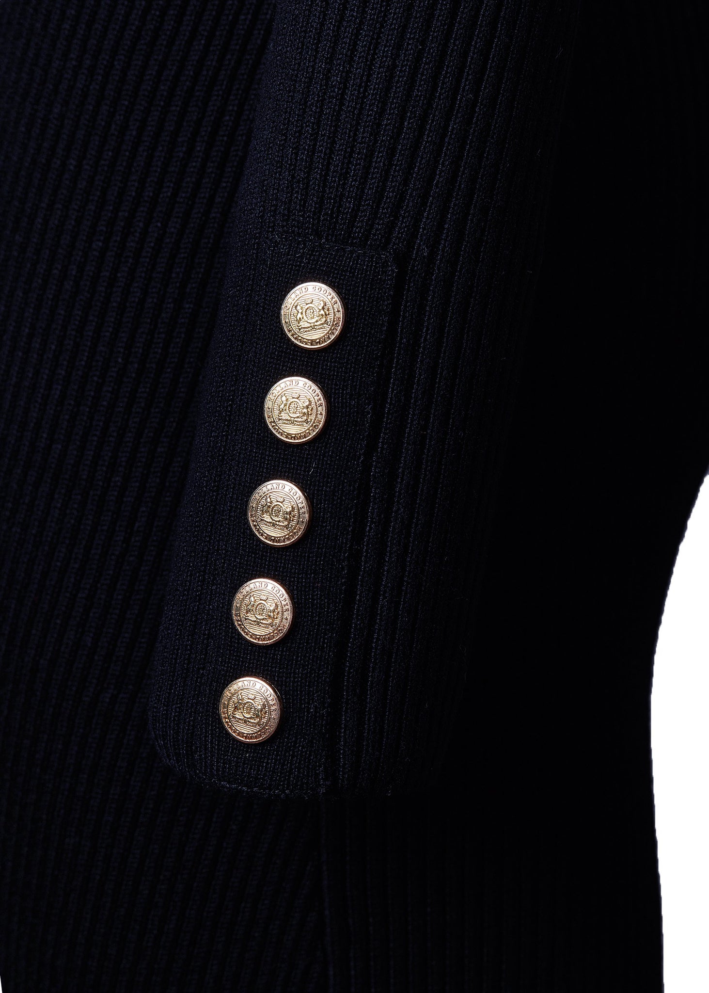 Our versatile midi dress is just as comfortable as it is flattering. The chevron ribbed fabric creates a body-contouring fit while the high roll neck ensures you’ll feel cosy all winter. Detailed with our iconic Holland Cooper metal hardware on both the shoulders and cuffs.