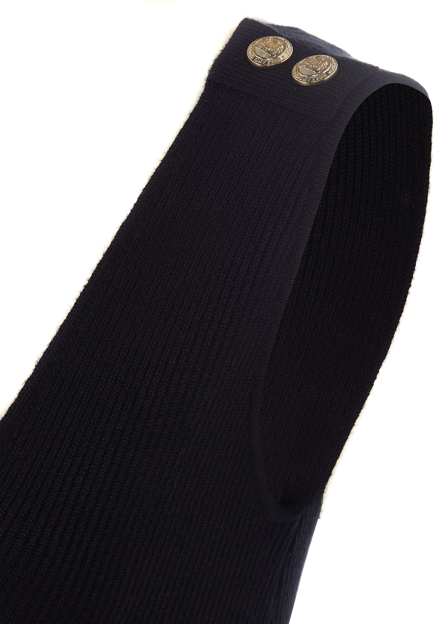 Both elegant and sophisticated, the Kensington Sleeveless Dress has been designed with a body-contouring fit. Created from a soft, ribbed fabric in a longer length and v neck line. Detailed with our iconic hardware on the shoulders.