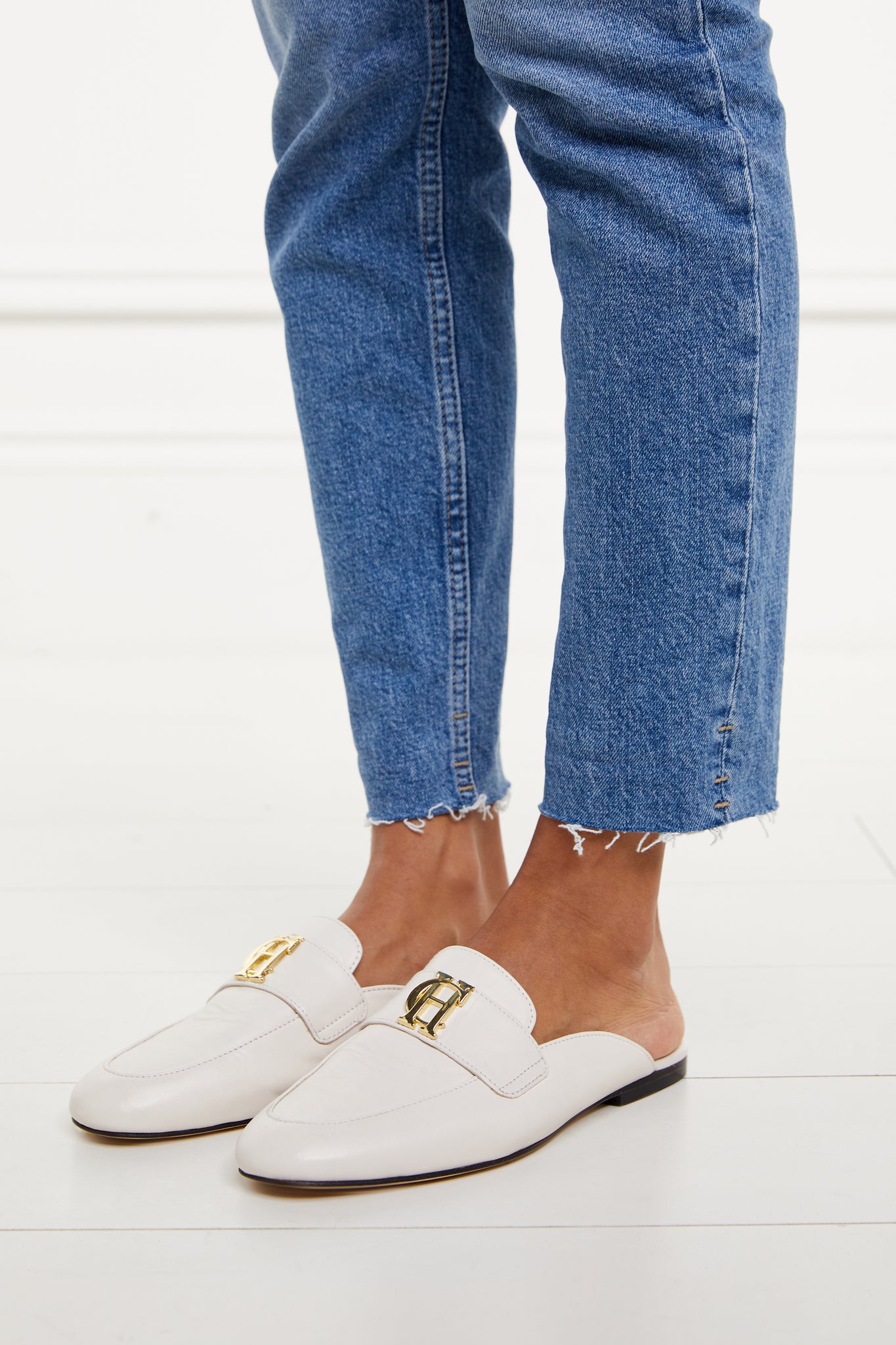 Designed with a modern and effortless aesthetic & crafted from a soft & smooth leather. With a backless shape and almond toe, these loafers have been designed to be an elegant & wearable addition to your wardrobe. The slight heel has been added to ensure they pair well with both jeans and tailoring. Beautifully detailed with a gold HC pin.