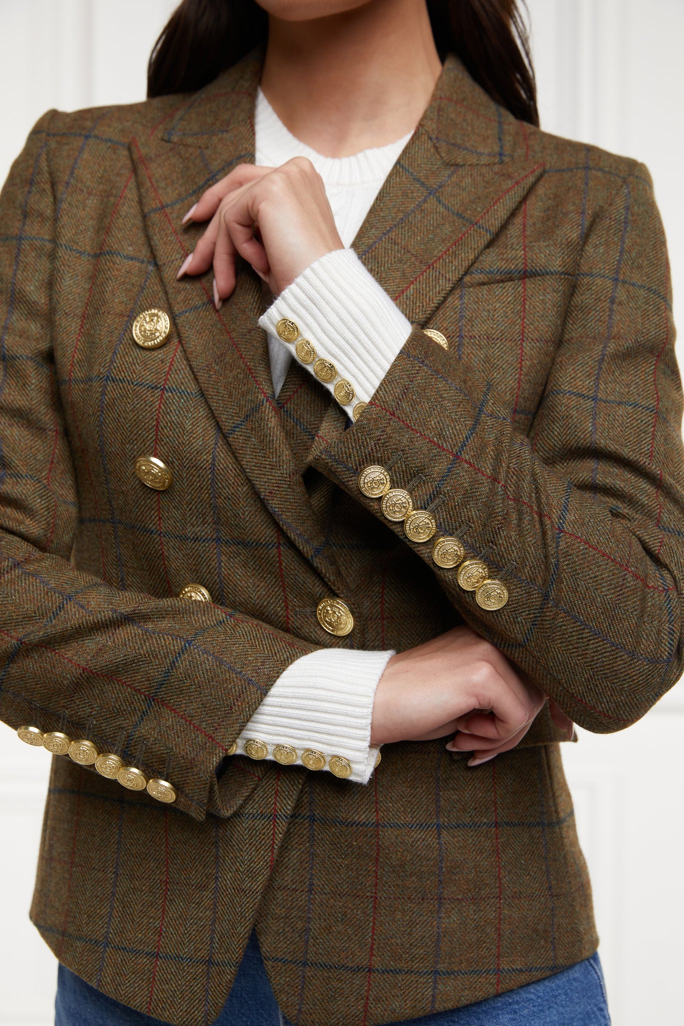 Made from wools woven in the UK, this blazer has a slim, double-breasted silhouette featuring HC's signature crested rivets. Precisely tailored to ensure a sharp and tailored profile worn open or closed, each blazer has been fully lined with a luxury stretch lining for comfort.
