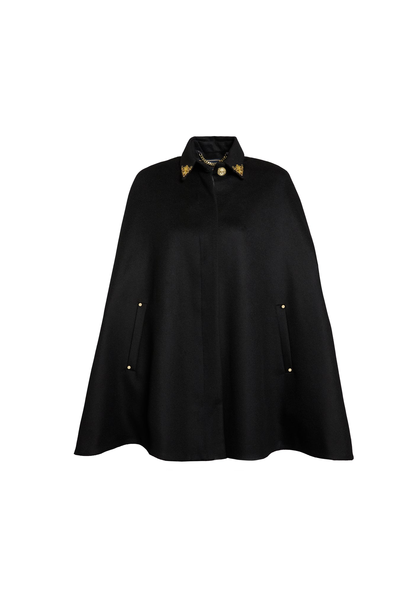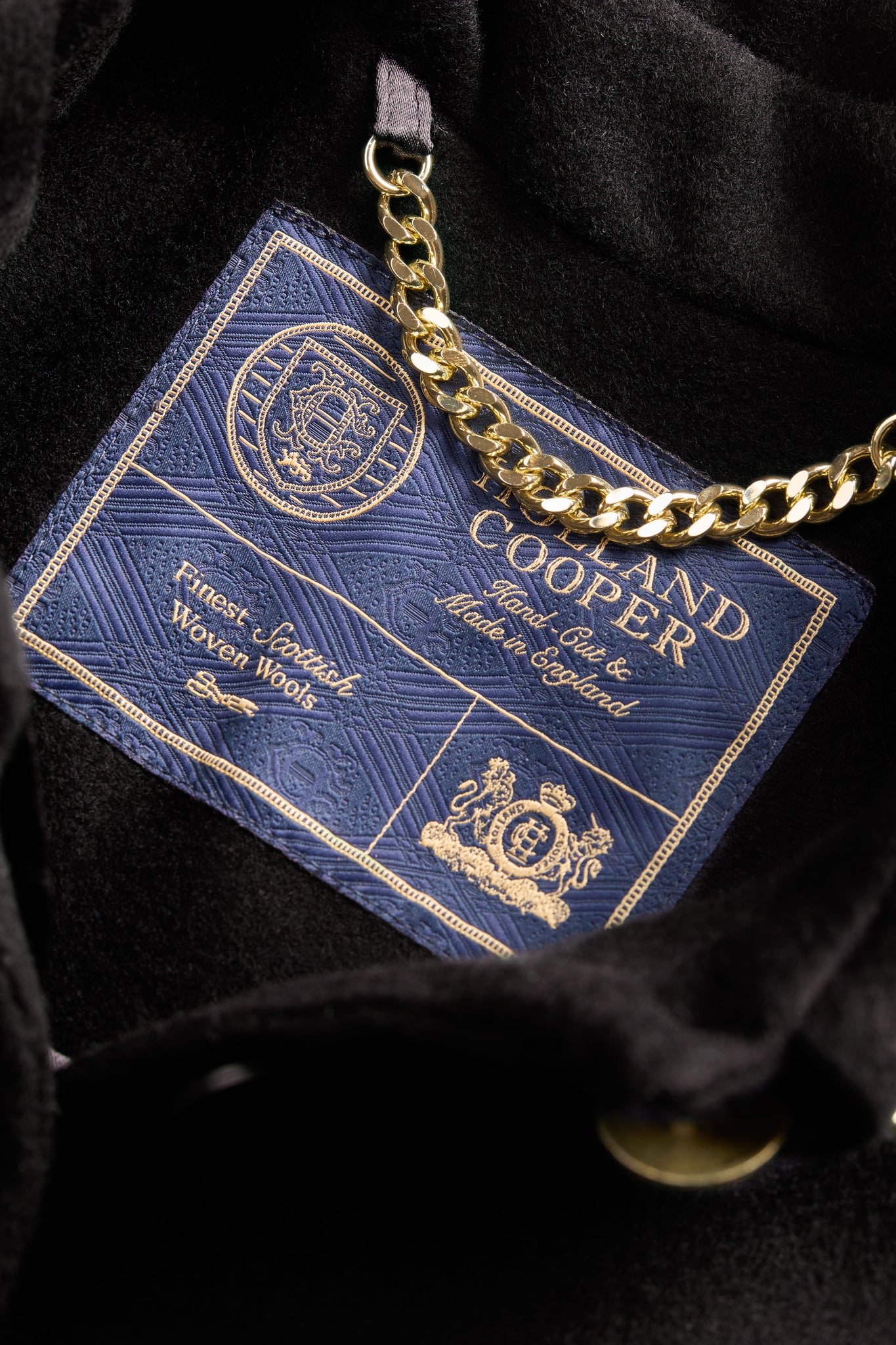 Crafted from the finest British wool, this elegant cape embodies timeless sophistication. Designed for both style and practicality, its tailored fit across the shoulders ensures comfort and effortless movement. Updated for the season, it now features a refined collar adorned with our signature gold metal detailing, adding a touch of luxury to this heritage piece. Hand-cut and made in England, this cape is a true testament to British craftsmanship.