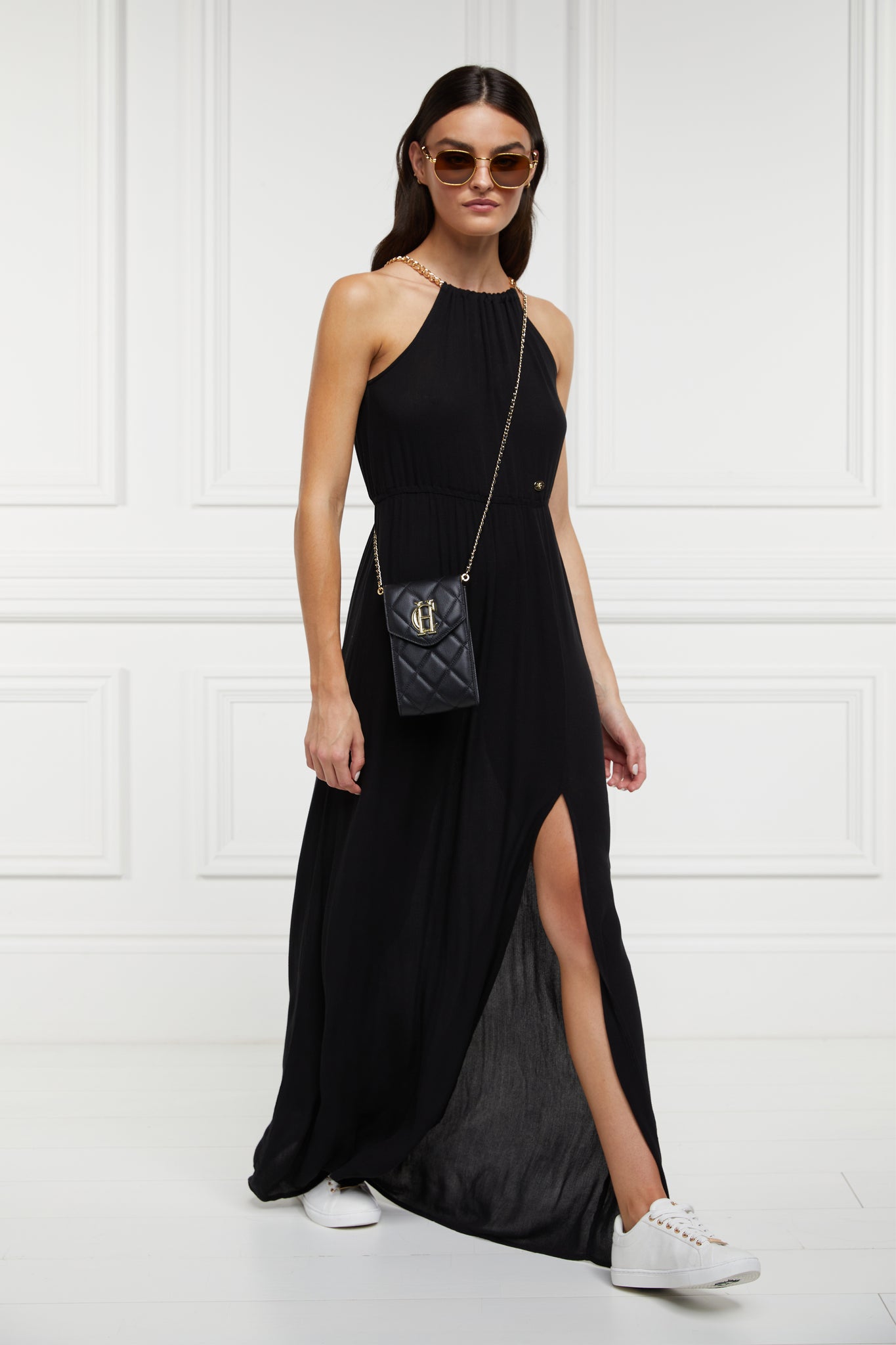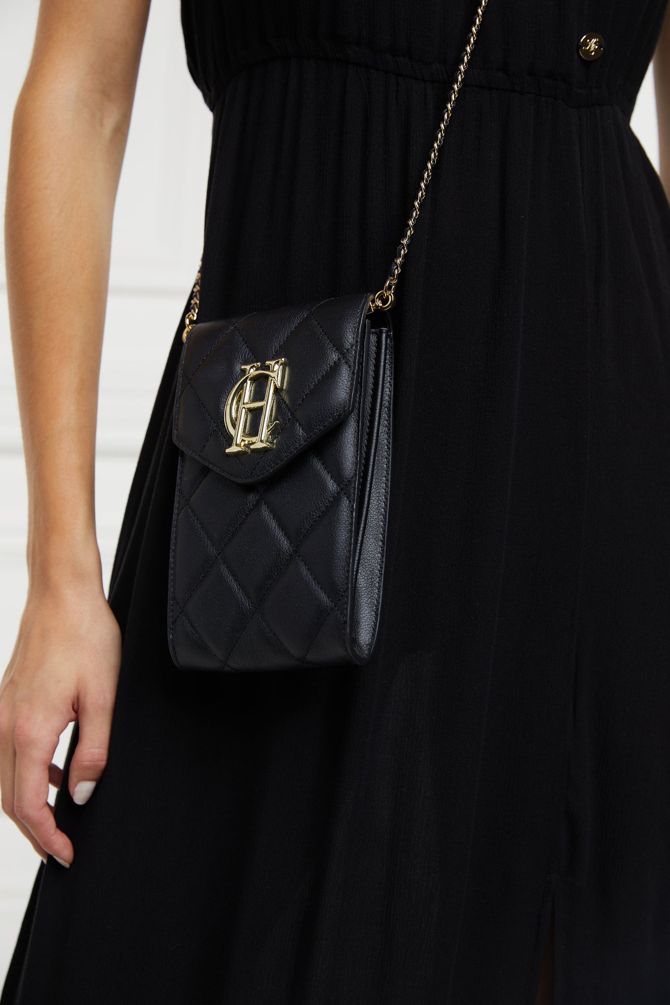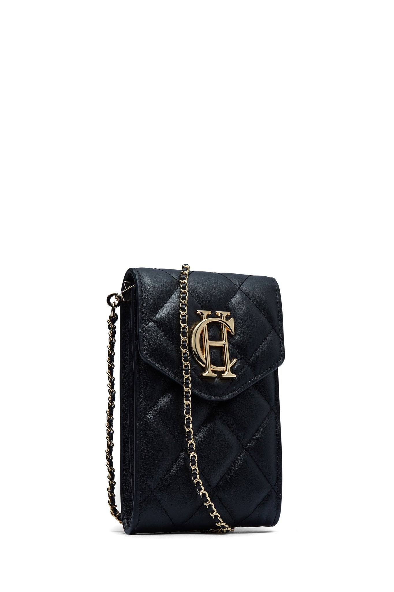 Beautifully crafted from premium quilted leather, this phone pouch is the perfect companion for every outfit. Centred around our iconic gold HC branding, this bag comes with a detachable leather-filled gold chain to perfectly sit on your shoulder. Fastened with a strong magnetic clasp and on the front and a small zip pocket on the back for safe keeping.