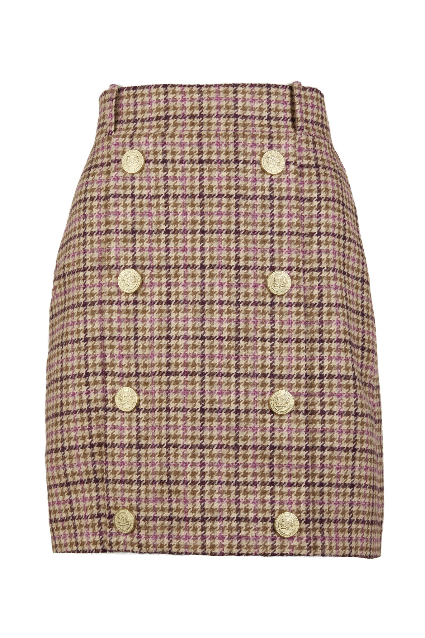 This mini style pencil skirt is fully lined and cut for a close fit from wool accented by gold rivets engraved with the classic HC crest. Tuck your knit or blouse into the sculpting high-rise waist for an extra stylish look and feel.