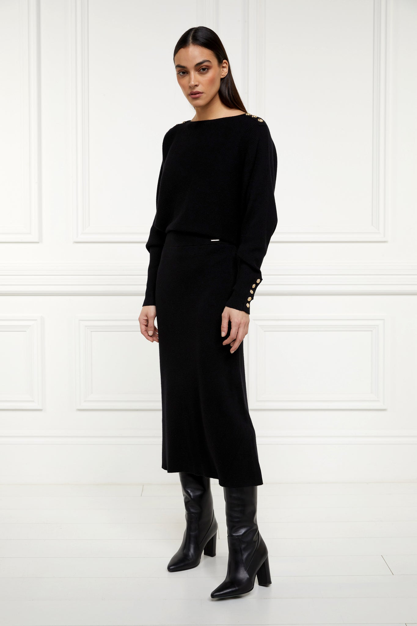 Made from a luxuriously soft yarn, this skirt has been designed with a timelessly elegant silhouette. With a flattering A-line shape and midi length, this skirt is beautifully classic and feminine. With a thick rib for a contouring fit, the tubular elastic waistband ensures a comfortable, all day wear.