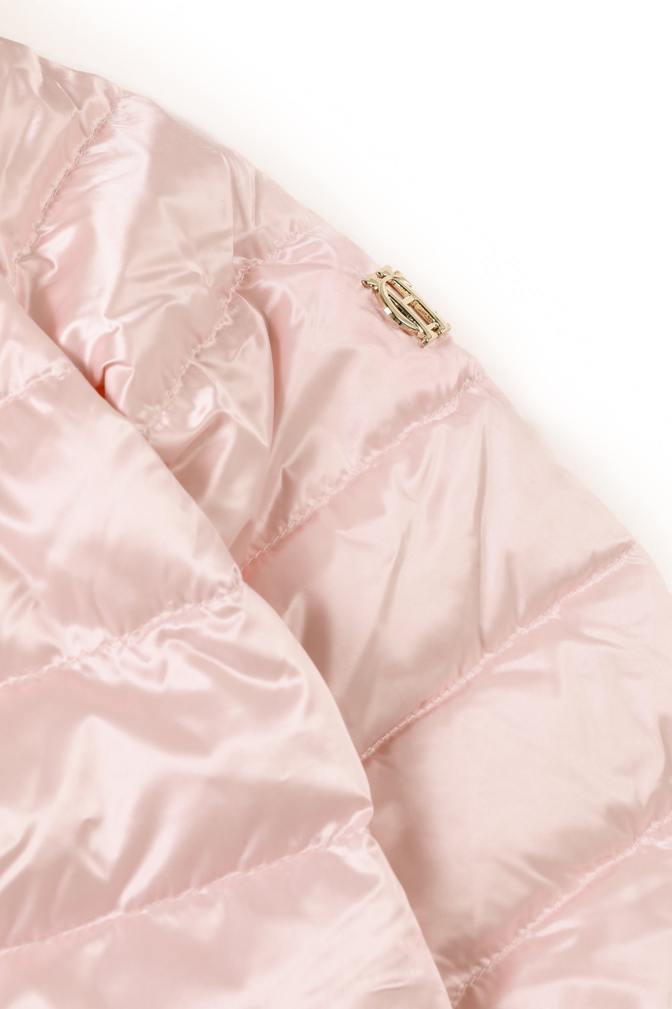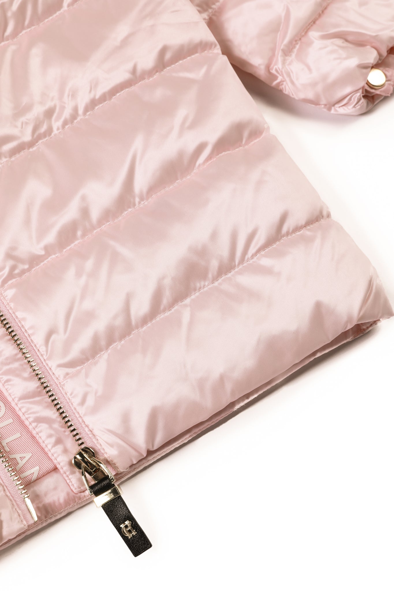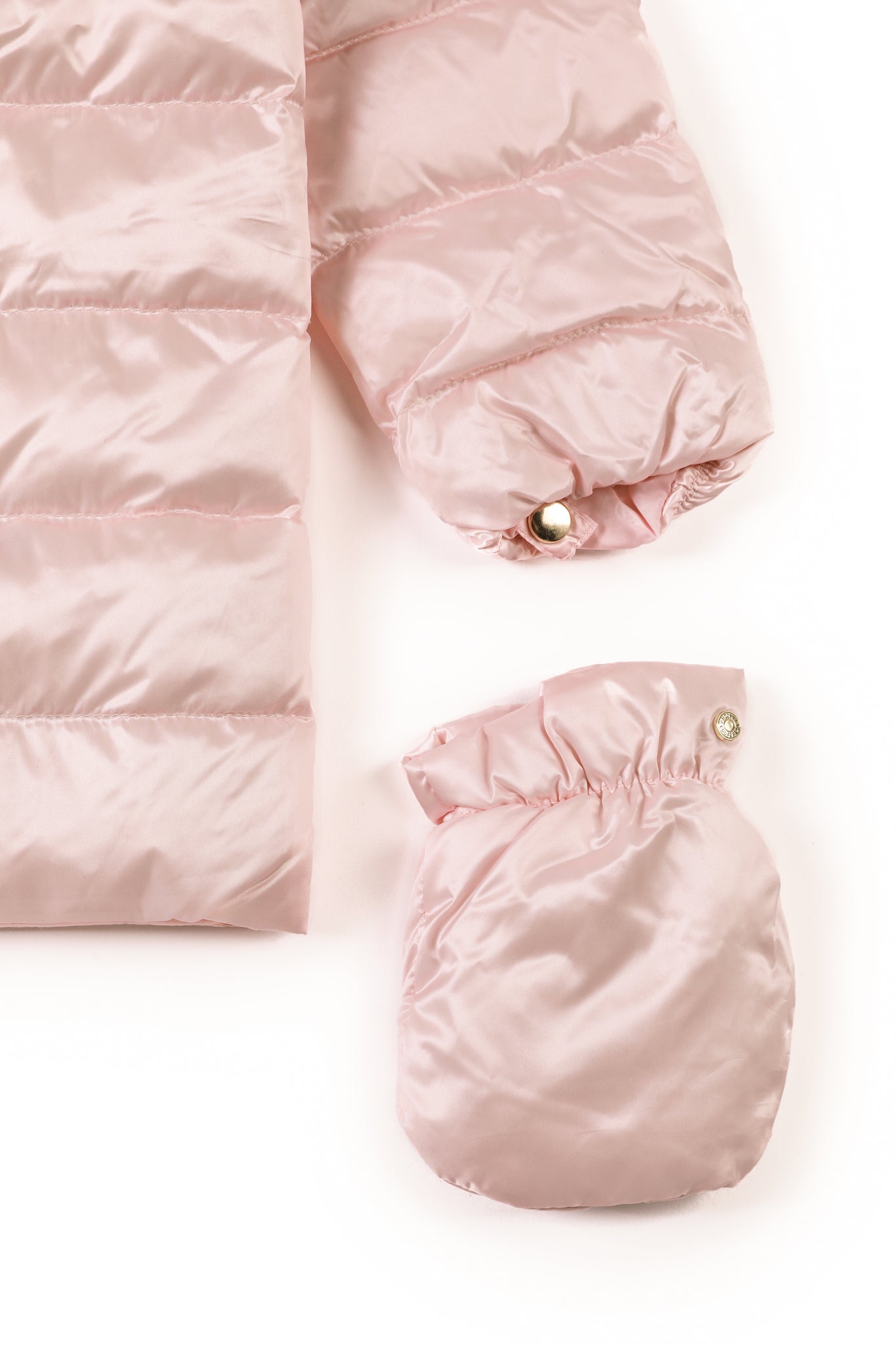 Designed with a responsibly sourced down fill and water-resistant, quilted outer shell, you can be sure to rely on this piece for practical dressing this winter. Detailed with a luxurious faux fur hood with an internal strap for keeping the cosy mittens attached for safe keeping and easy wear. Finished with our iconic gold hardware and zip detailing.