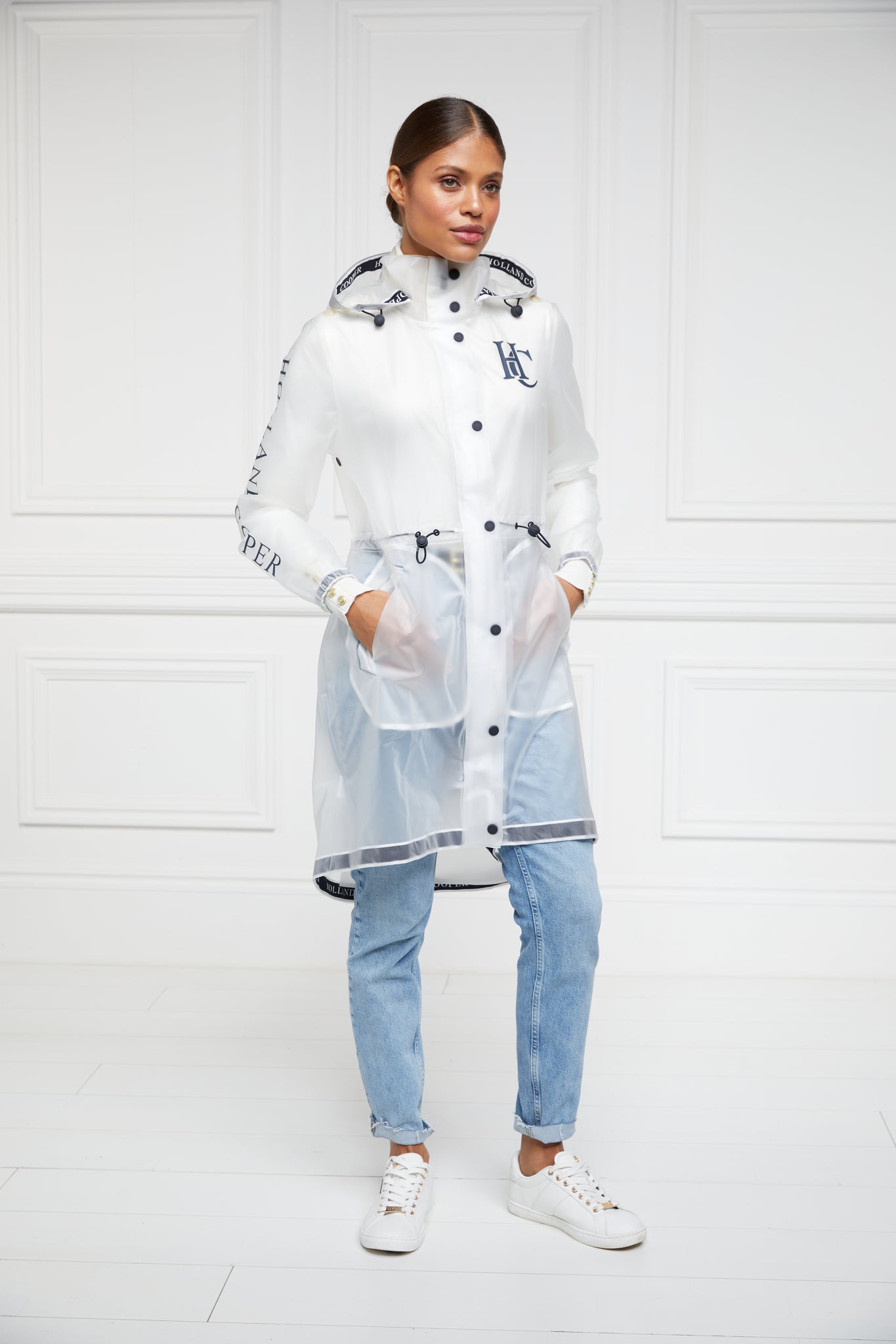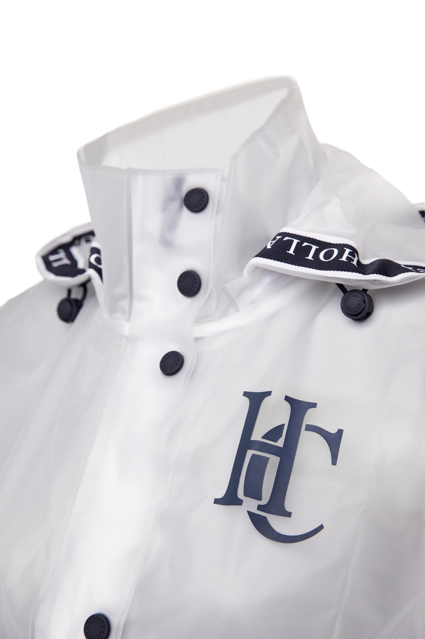 Designed to withstand all weather, this raincoat is a must have essential for all equestrian riders. This mid-length coat features a drawstring waist and leg straps to hold in place when riding, making for a flattering silhouette. Meticulously made from a fully waterproof material with large pockets, perfect for keeping all your belongings safe and dry. Detailed with metal hardware as well as HC branding on the arm and chest.